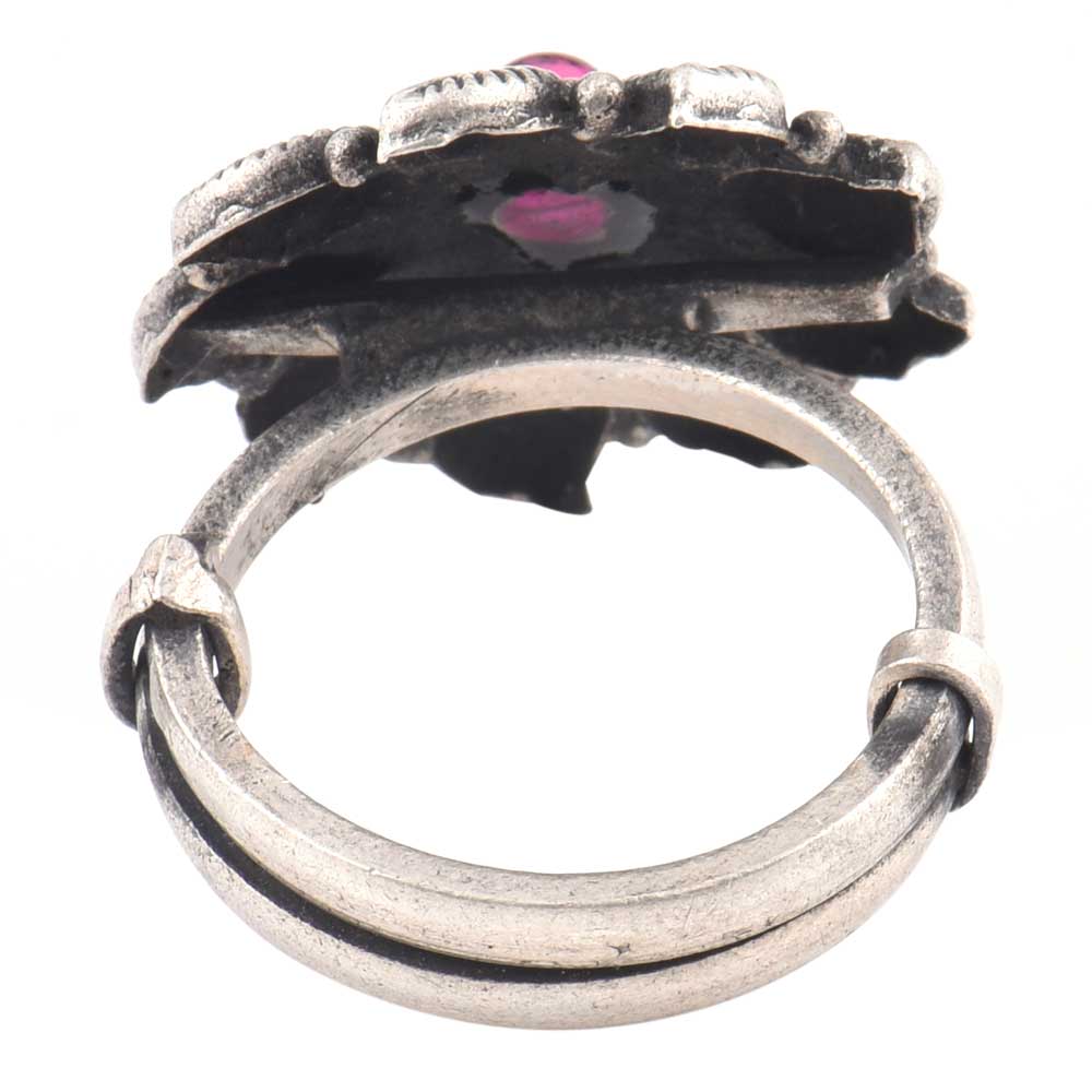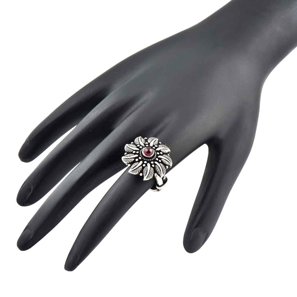Always a favorite this 92.5 Sterling Silver ring is made of a round Amethyst stone in the centre surrounded with embossed silver leaves around the stone. Gift it to your sister, friends and that special friend as a token of love and affection .perfect accessory to match your wedding, anniversary or valentines outfit.