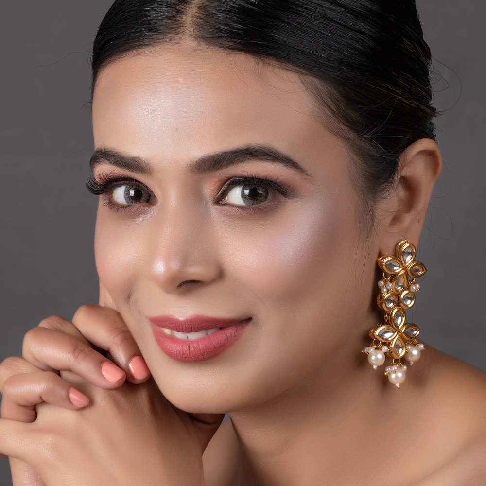 - Jhumka-inspired dome drops adorned with pearl clusters for graceful movement