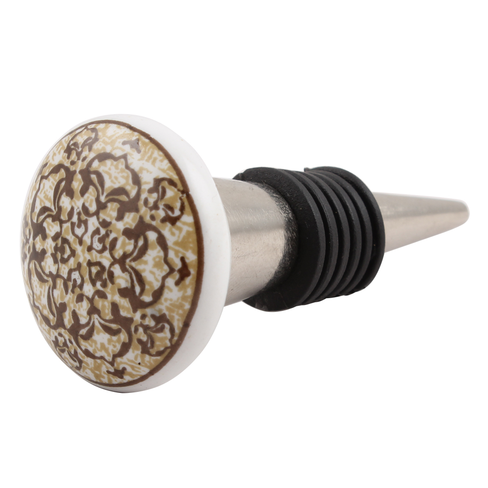 Floral Pattern Ceramic Wine Stopper.zinc alloy wine bottle stopper.