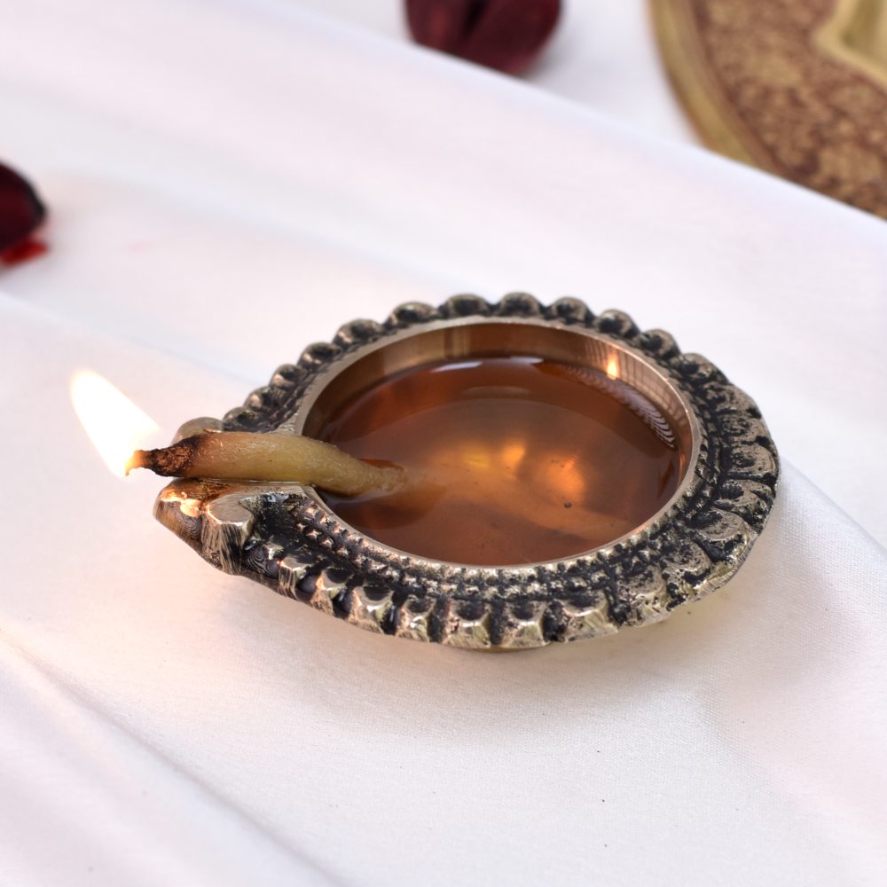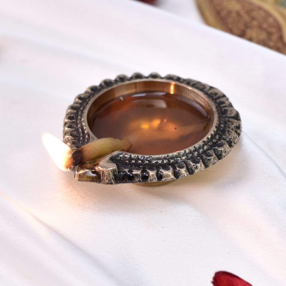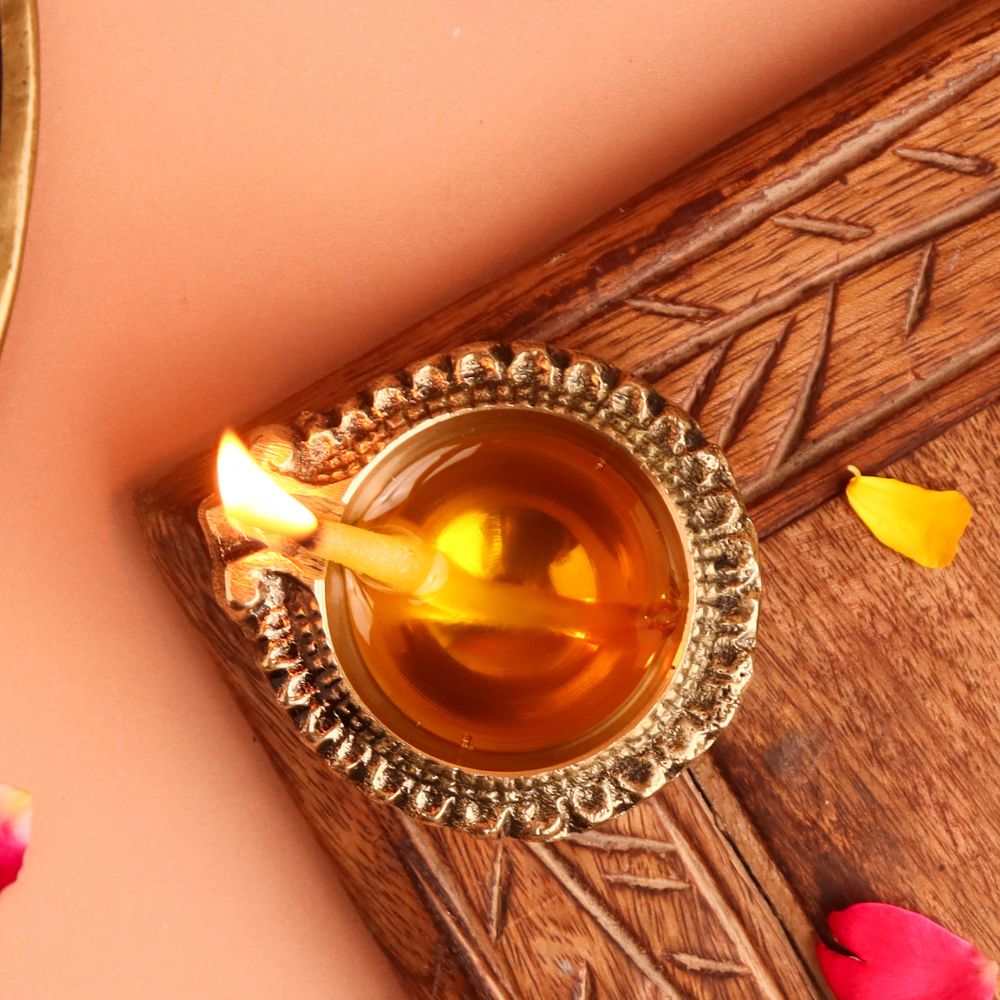 Bring divine radiance into your home with this Floral Round Brass Diya, a symbol of light, purity, and devotion. Handcrafted in solid brass with a polished golden finish, its delicate floral pattern adds elegance to traditional rituals. Compact yet striking, this diya is perfect for Diwali, daily puja, or as a sacred accent in your mandir and living spaces.