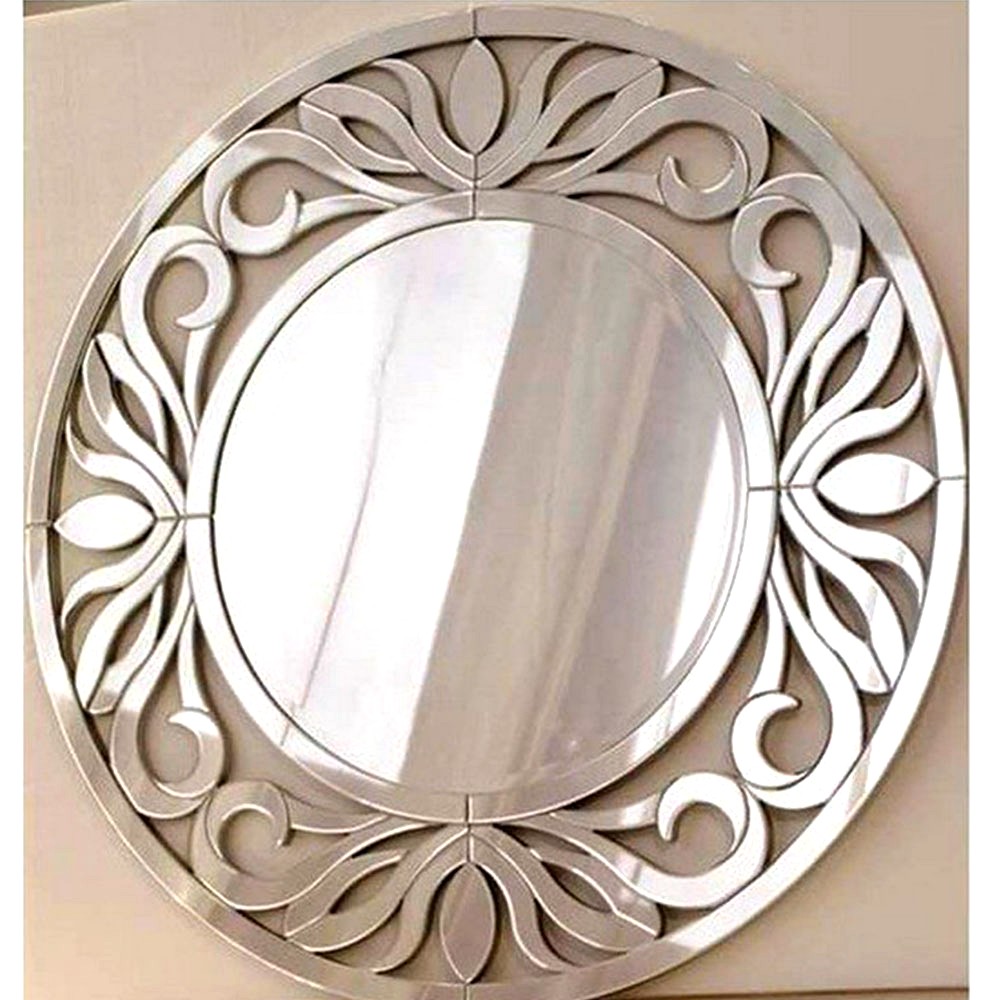 Adorn your wall with this clear glass floral scroll round mirror, handcrafted to showcase intricate floral artistry and graceful symmetry. Its decorative frame and luminous glass finish make it a timeless piece for both modern and traditional interiors. Packed & quality-checked by Indianshelf.