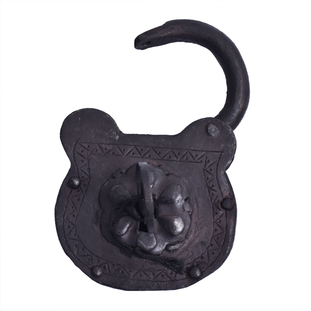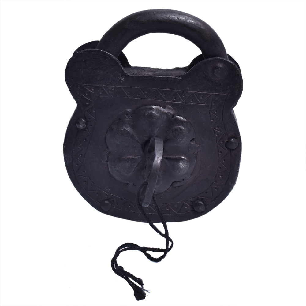 This wistful padlock is constructed traditionally from cast iron. It is a remarkable decorative item in the antique style that draws attention well because of its charmingly nostalgic appearance. The lock is constructed of heavy-duty cast iron and is finished in an aged brown color. Â It is only suitable for decorative uses and is not functional. A single key is strung along a thread.