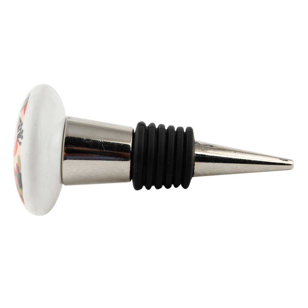 Flower Flat Ceramic Wine Bottle Stopper. Zinc Alloy Wine Bottle Stopper with Attractive Jute Bag Packaging.