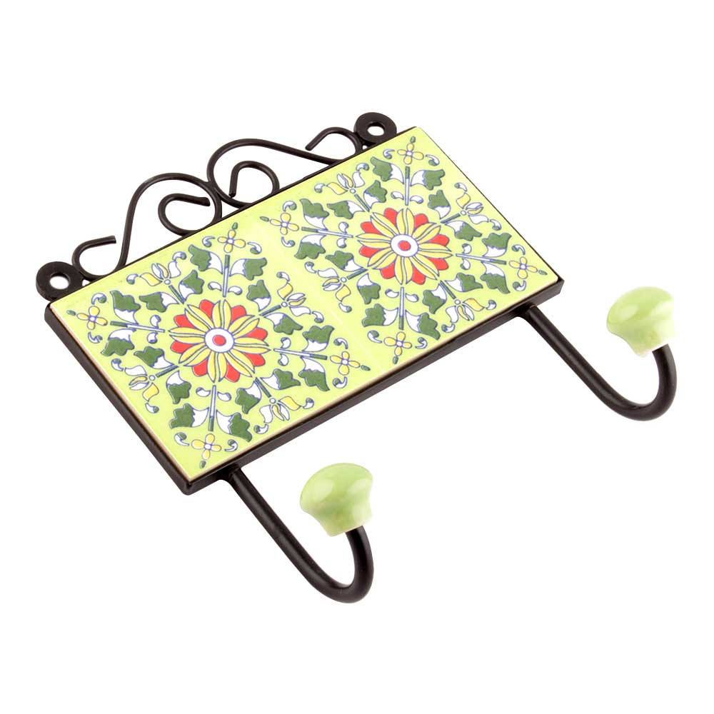 Forest Green And Red Flower Tiles Hooks Online. When Put on Wall or Cabinet it is an Art in itself. The Metal Part of this Hook is Black Powder Coated.