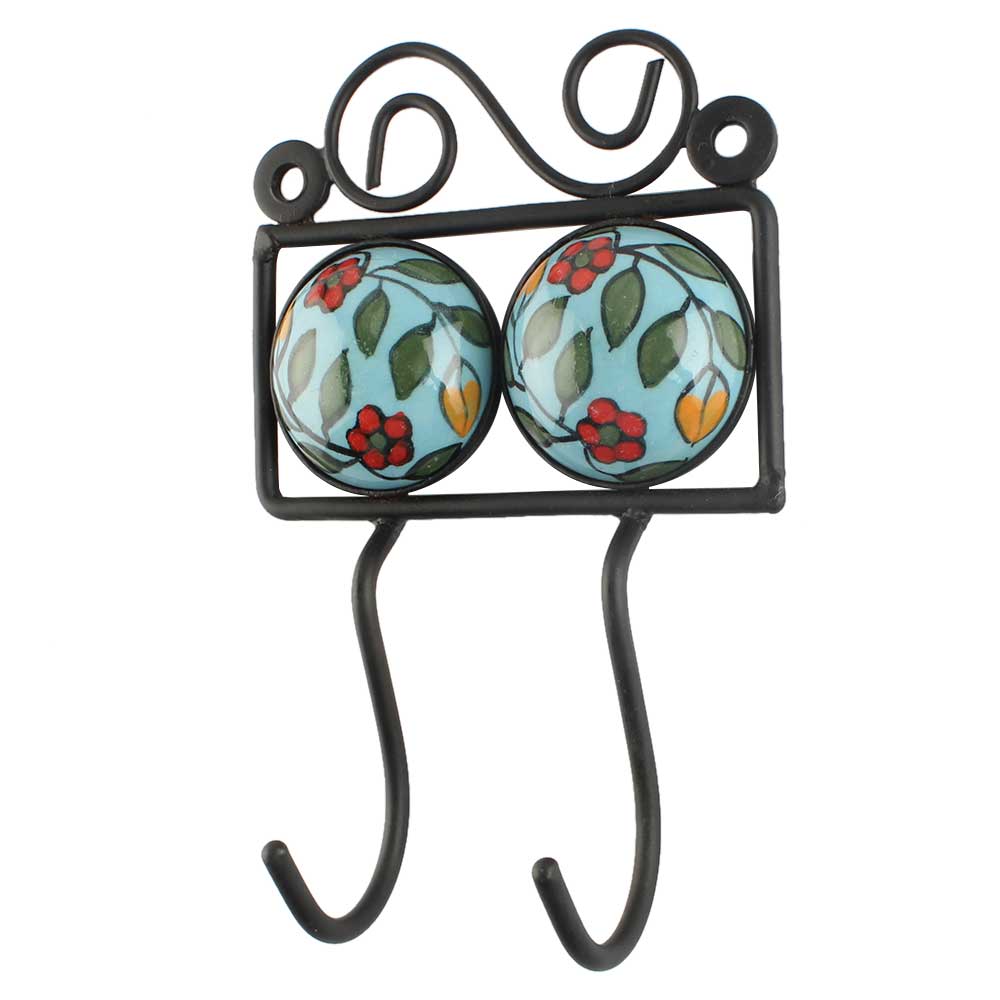 Forest Green Leaf Ceramic Tile Hook Online. When Put on Wall or Cabinet It is An Art in Itself. The Metal Part of this Hook is Black Powder Coated.