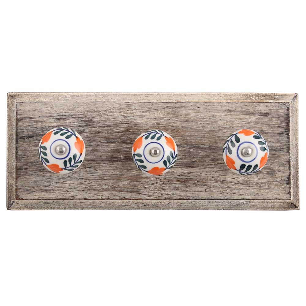 forest Green Leaf Ceramic Wooden Hook. A Perfect Complement to the Soft Tone of the Wood are these White Traditional Hat & Coat Hook Made of Genuine Porcelain and Brass. It can be use to Hang Jewellery, Leashes, Towels, Scarves, Light Weight Sweaters, Caps Etc.