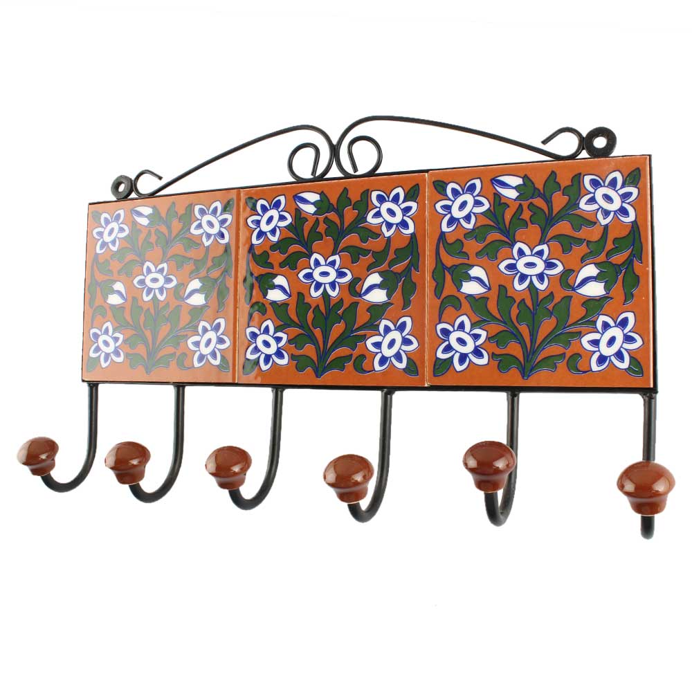 Forest Green Leaf Floral Ceramic Tile Wall Hook. When Put on Wall or Cabinet It is An Art in Itself. The Metal Part of this Hook is Black Powder Coated.
