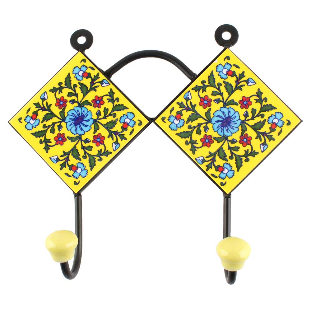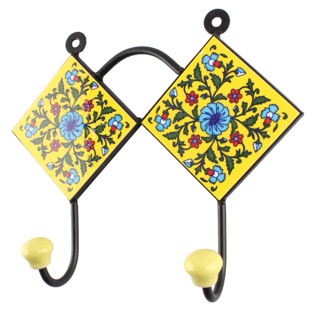 Forest Green Leaf Flower Ceramic Tile Hook. When Put on Wall or Cabinet It is An Art in Itself. The Metal Part of this Hook is Black Powder Coated.