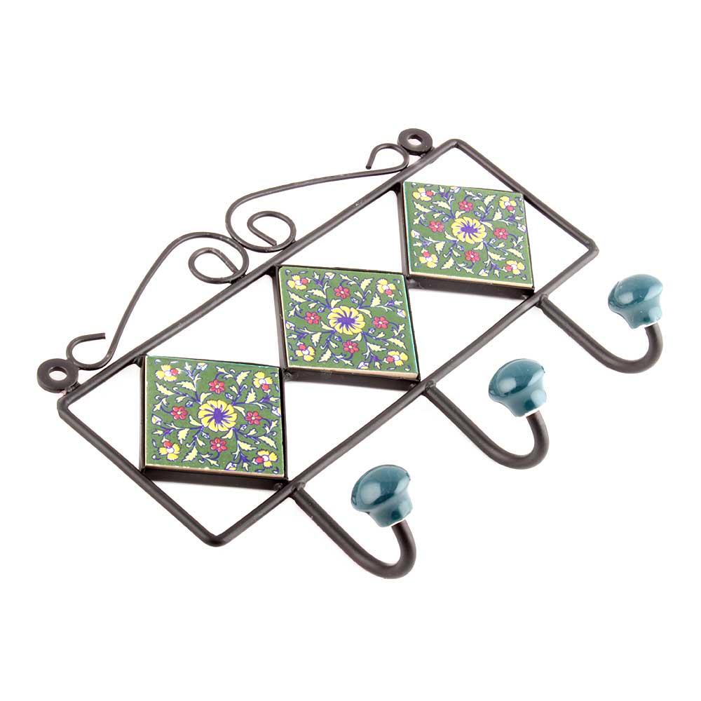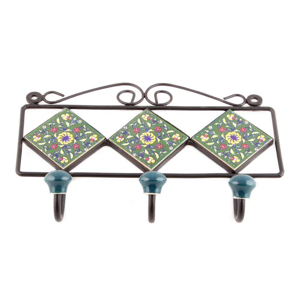 Forest Green Yellow Wheel Tiles Hooks. When Put on Wall or Cabinet it is an Art in itself. The Metal Part of this Hook is Black Powder Coated.