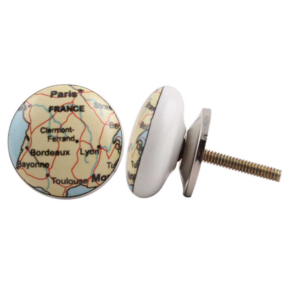 If you're looking to add a unique touch to your furniture, the France Map Flat Ceramic Drawer Knob is an excellent choice for upcycling old furniture or adding an unexpected pop to new pieces.