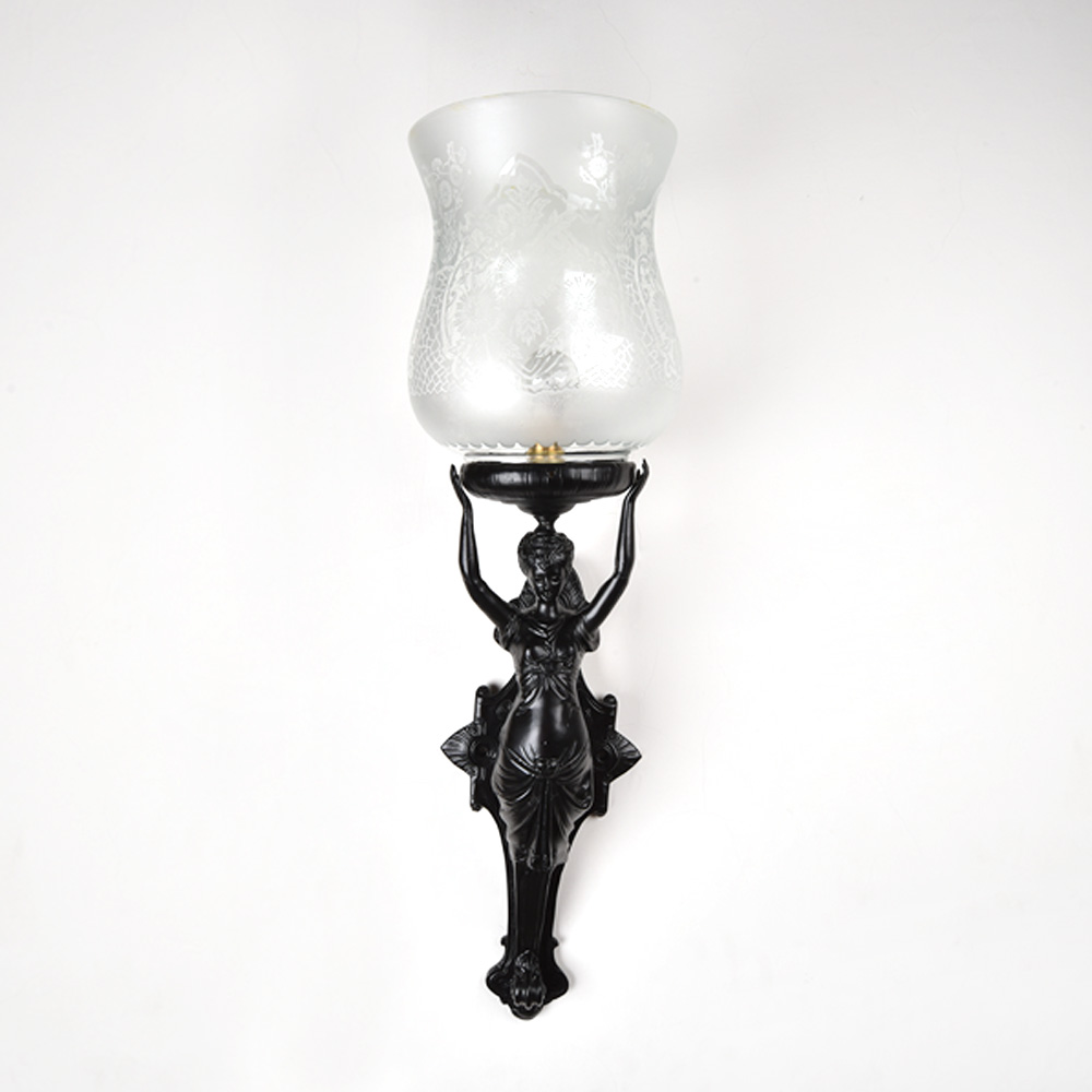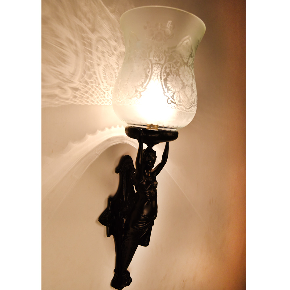 French Art Nouveau lady figure wall lamp. The lamp is unique and allows a great lighting option for any room.
