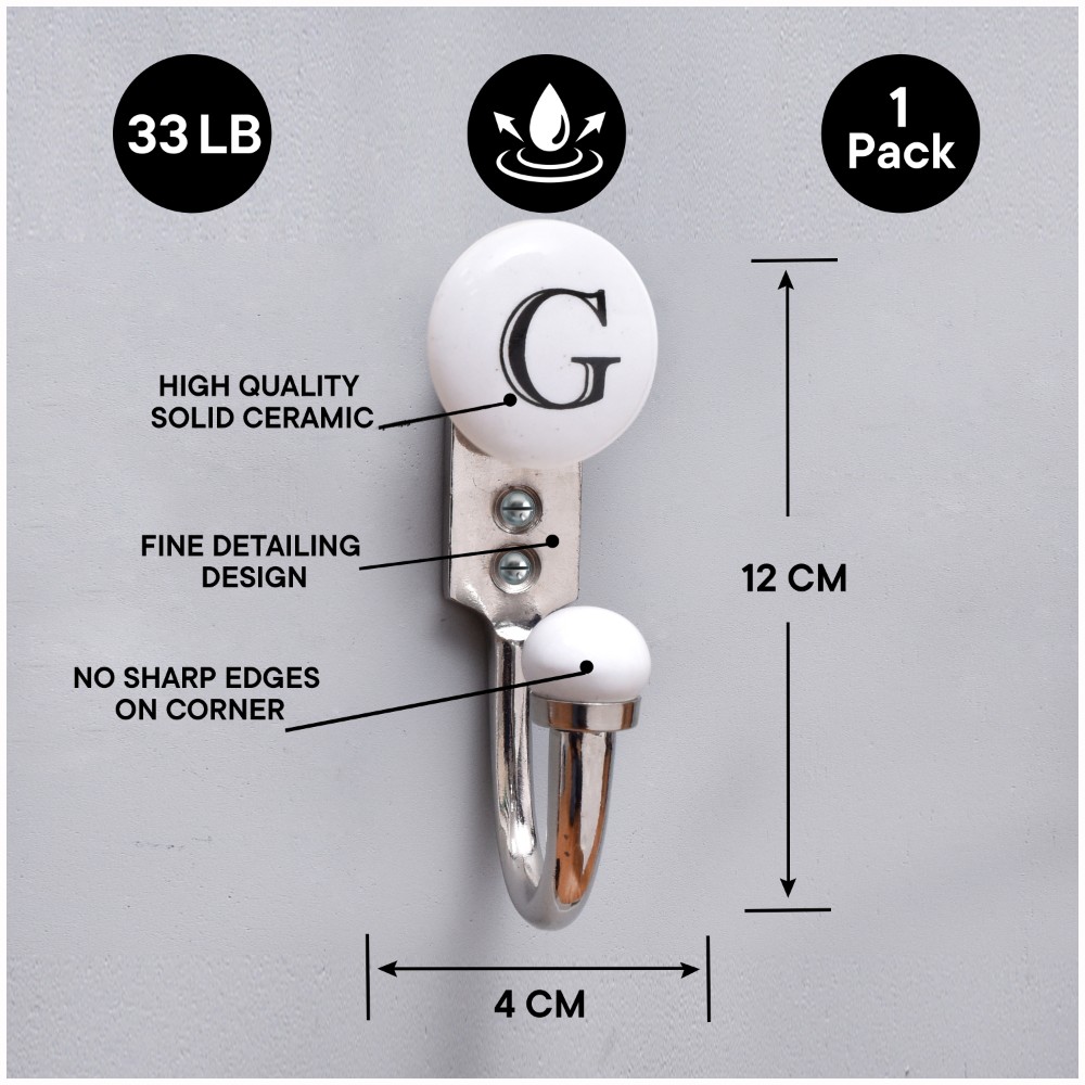 G Flat Ceramic Hook. When Put on Wall or Cabinet It is An Art in Itself. This Hook is Strong Enough to Hold Your Keys, Tea Cups, Hand Towels, Cloths Etc.