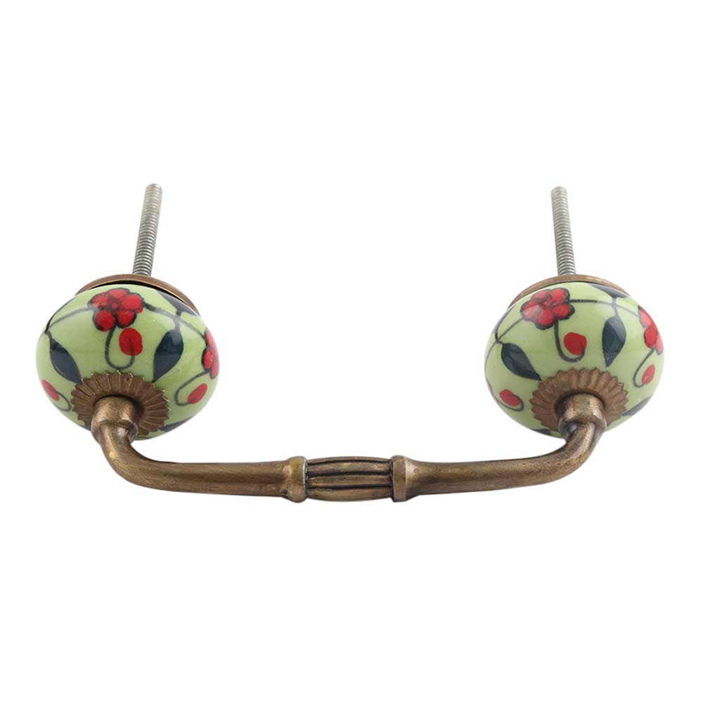 Garden Bouquet Ceramic Bridge Handle. Ideal for Drawer, Dresser, Cabinet, Wardrobe, Cupboard and Almirah.