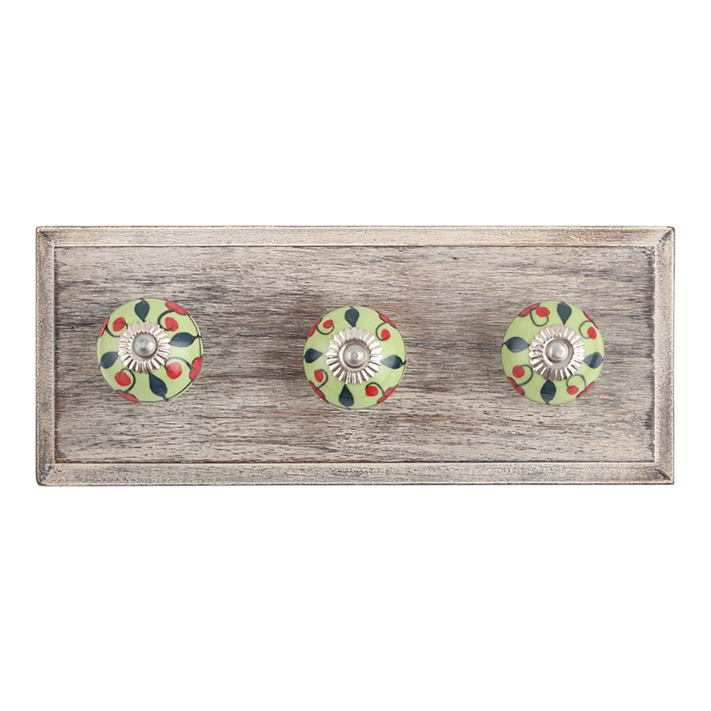 Garden Bouquet Ceramic Wooden Hook. A Perfect Complement to the Soft Tone of the Wood are these White Traditional Hat Coat Hook Made of Genuine Porcelain and Brass. It can be use to Hang Jewellery, Leashes, Towels, Scarves, Light Weight Sweaters, Caps Etc.
