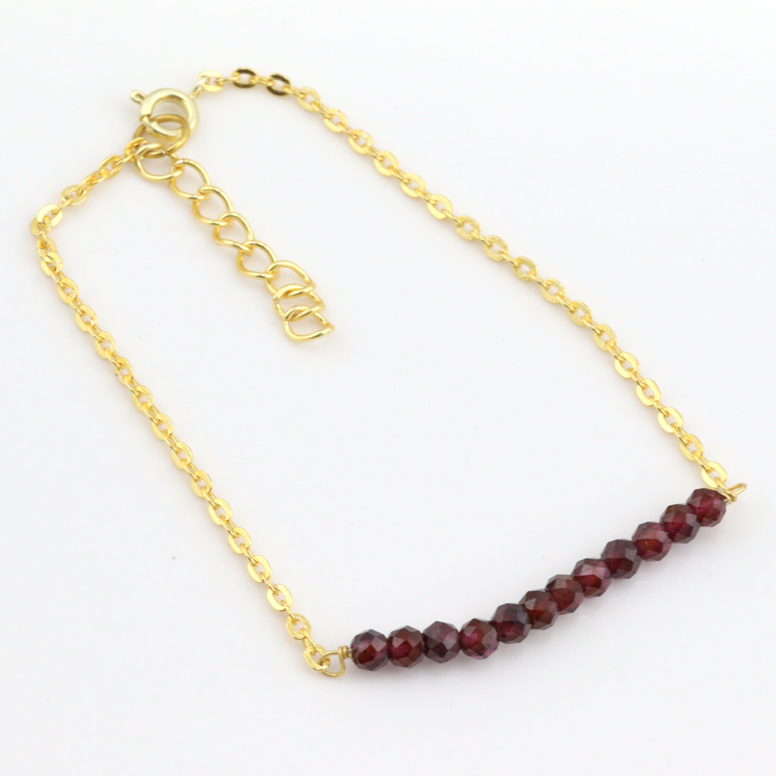 This Garnet Beaded Dainty Minimalist Bracelet showcases the deep, romantic red of natural garnet paired with the warm luminosity of 22k gold plated brass accents. Hand-strung by skilled artisans, each bead adds a touch of elegance and meaning, symbolizing passion, strength, and grounding energy. Lightweight and refined, this bracelet is perfect for women who love minimalist gemstone jewelry with a timeless charm.