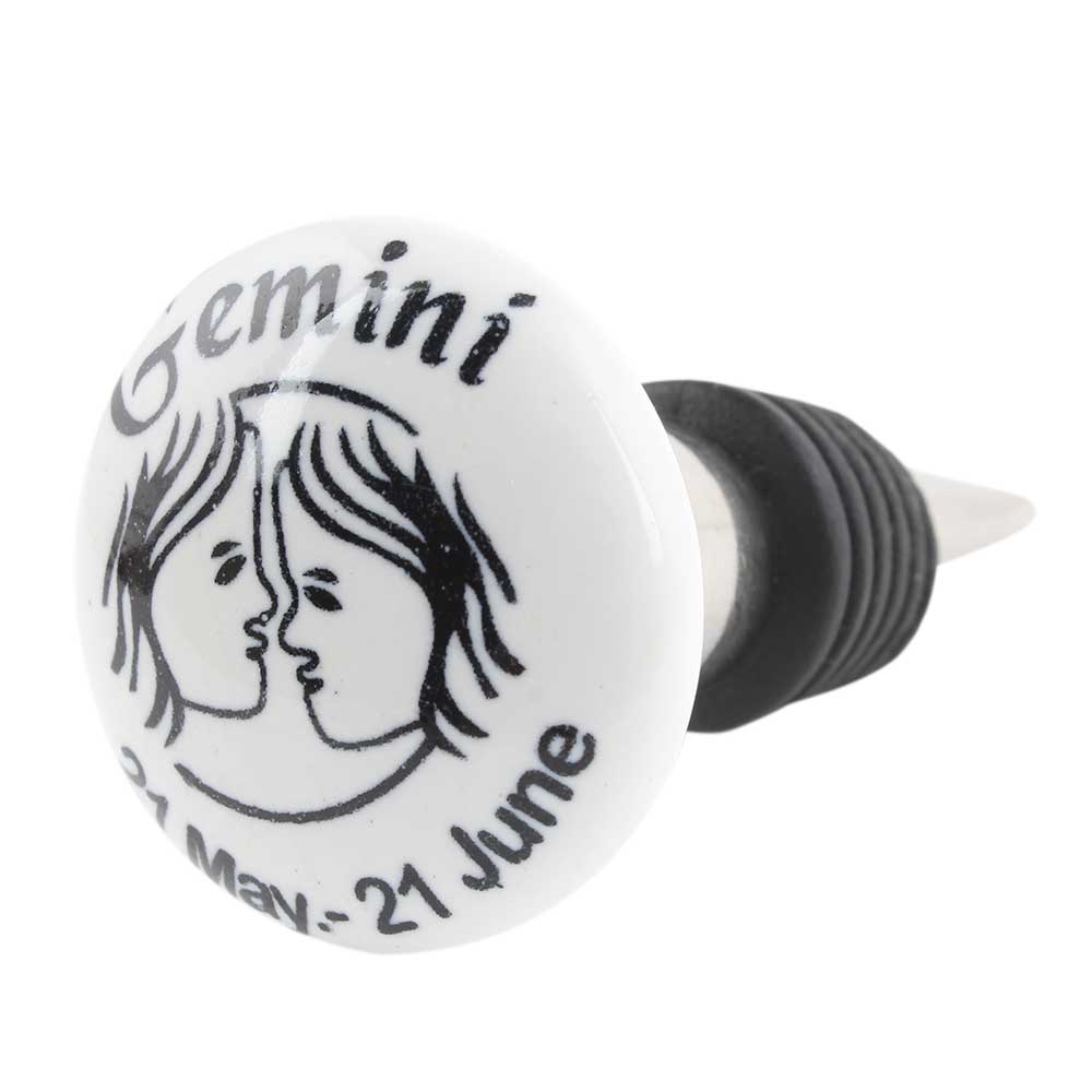 Gemini Flat Ceramic Wine Bottle Stopper. Zinc Alloy Wine Bottle Stopper with Attractive Jute Bag Packaging.