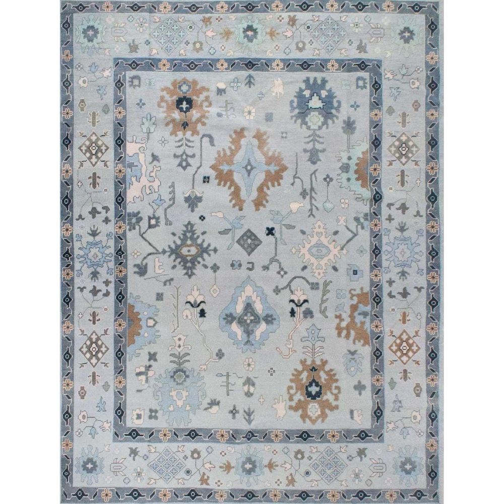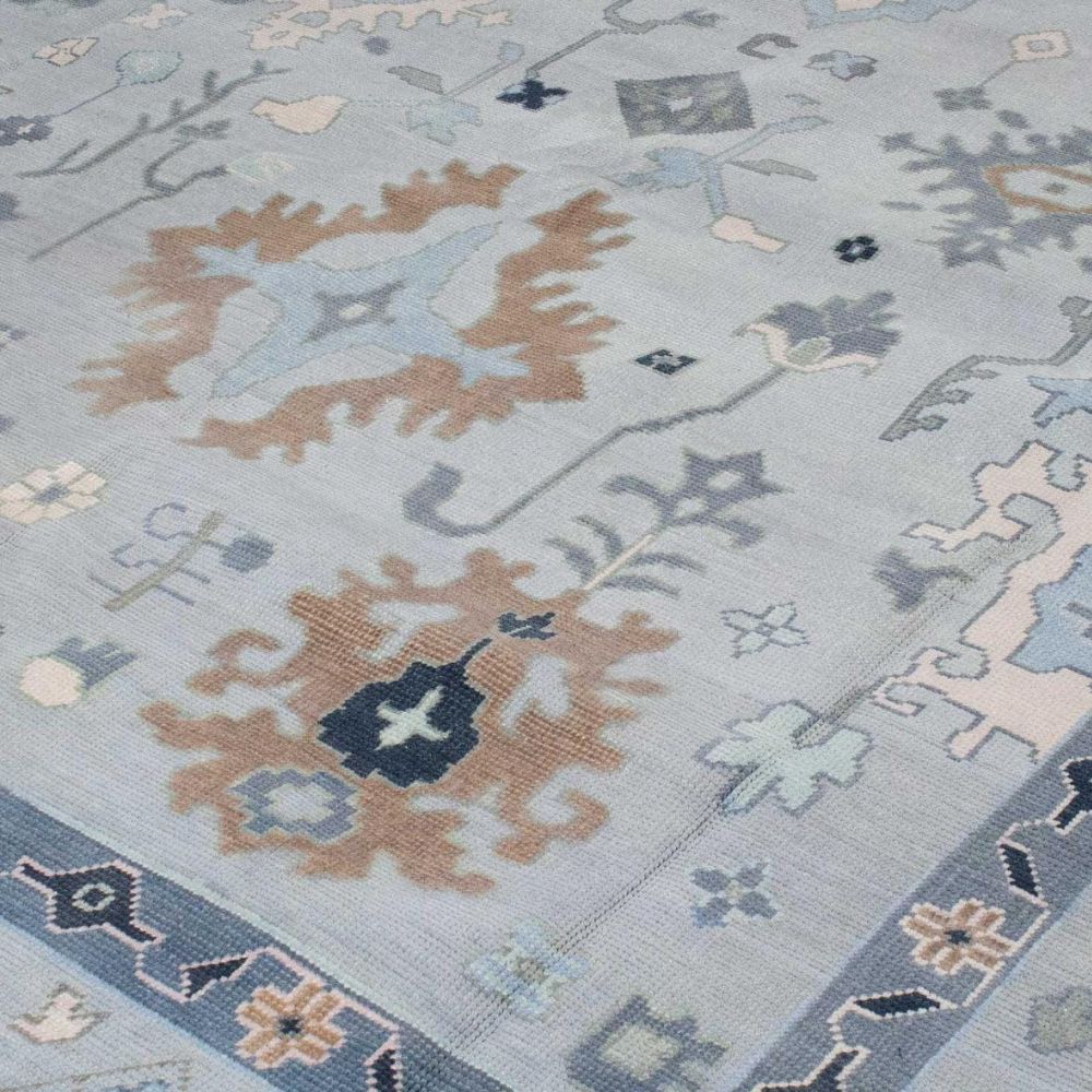 Bring timeless tradition into your modern home. The Blue Mist Oushak Rug by AnsariRugDesign is a sophisticated nod to classic Turkish weaving, updated in a cool, modern palette. Its soft icy blue field and earthy-toned floral medallions make it a refined centerpiece for both traditional and transitional interiors. Color Story: This rug features a serene light blue base adorned with floral and geometric motifs in shades of muted brown, ivory, charcoal, denim blue, and soft peach. The combination brings both calm and character to any space. Design & Pattern: Inspired by vintage Oushak rugs, the design features a central medallion flanked by asymmetrical motifs, vines, and ancient symbols all meticulously hand-knotted in a soft, deconstructed style. Three layers of borders frame the main field, adding visual richness and depth. Colors may appear slightly different on screen depending on your display settings. As it Appears Pack of One Piece.