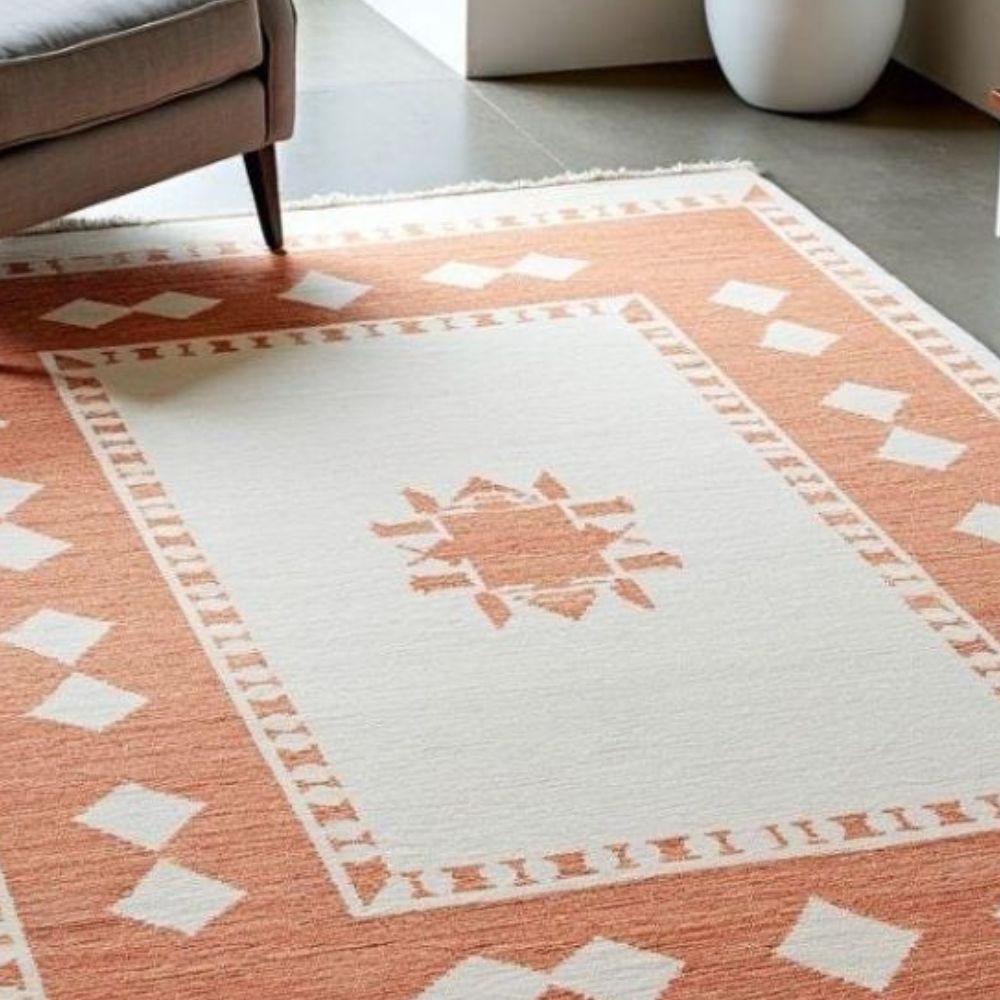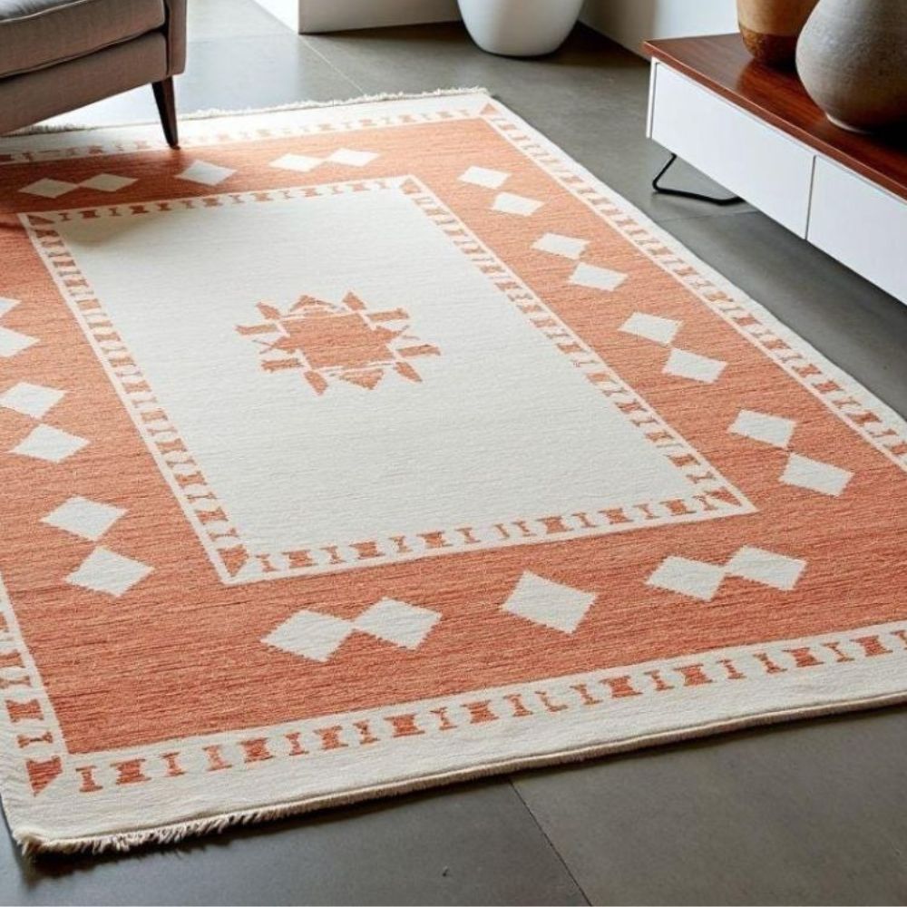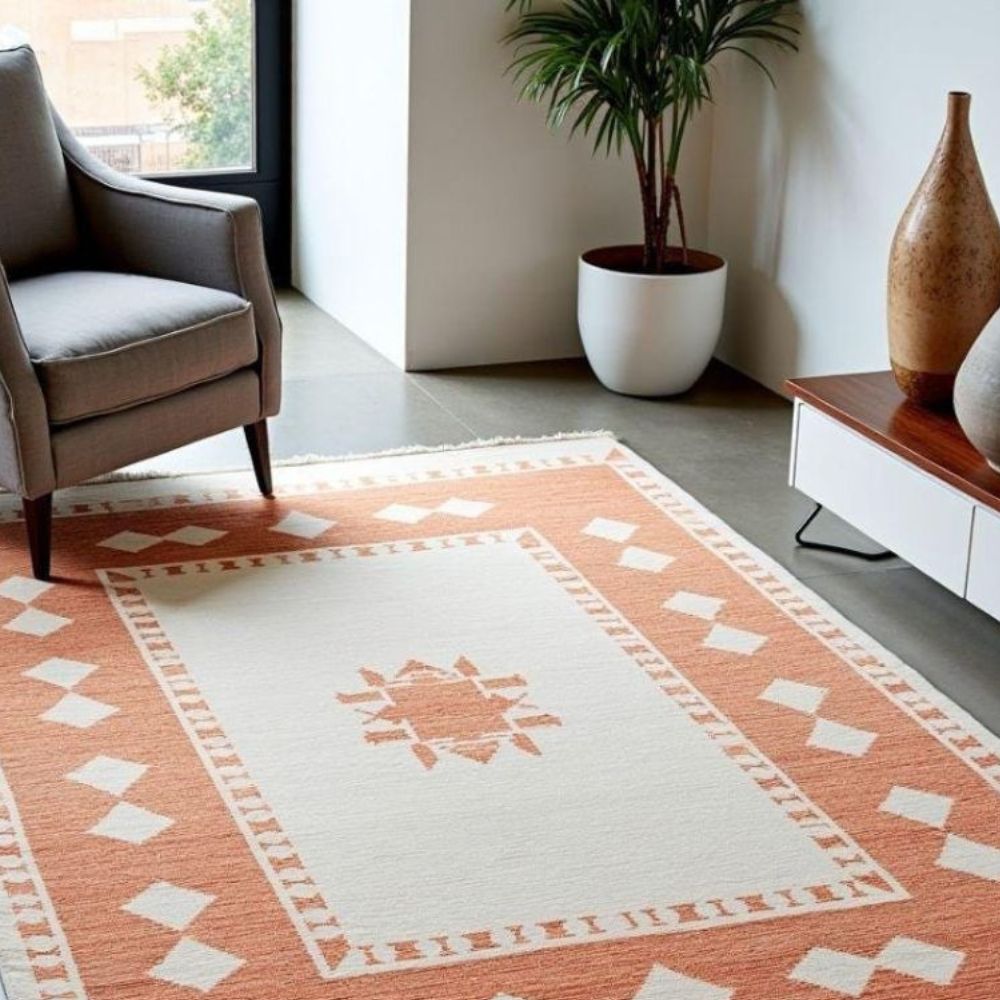 Bring timeless elegance to your home with this hand-knotted wool rug, a true masterpiece crafted by skilled artisans. Unlike machine-made or flatwoven rugs, each knot is tied by hand, ensuring exceptional quality, durability, and uniqueness in every piece. The rug features a tribal geometric design in warm terracotta and ivory shades, making it a versatile choice for both modern and traditional interiors. Its fine knotting not only enhances its soft, plush texture but also guarantees long-lasting beauty that can be cherished for generations. As it Appears Pack of One Piece.