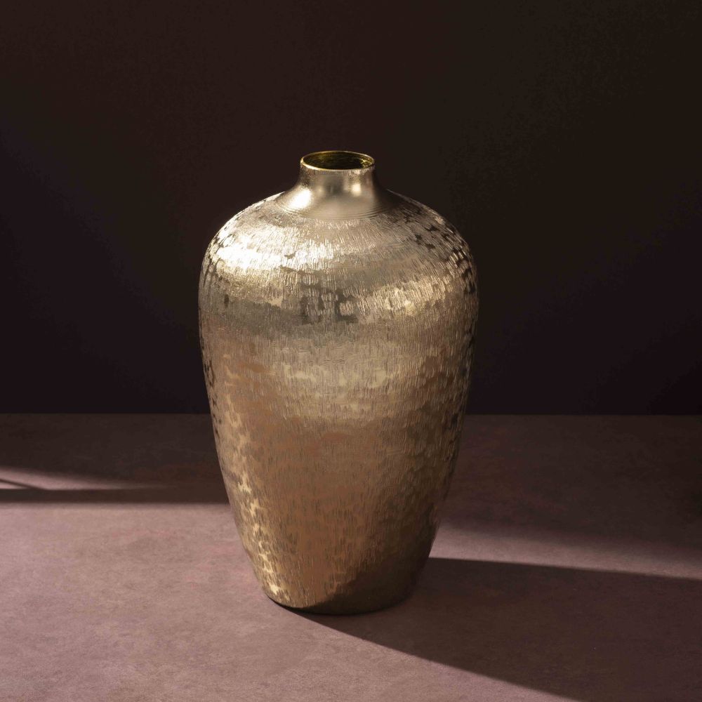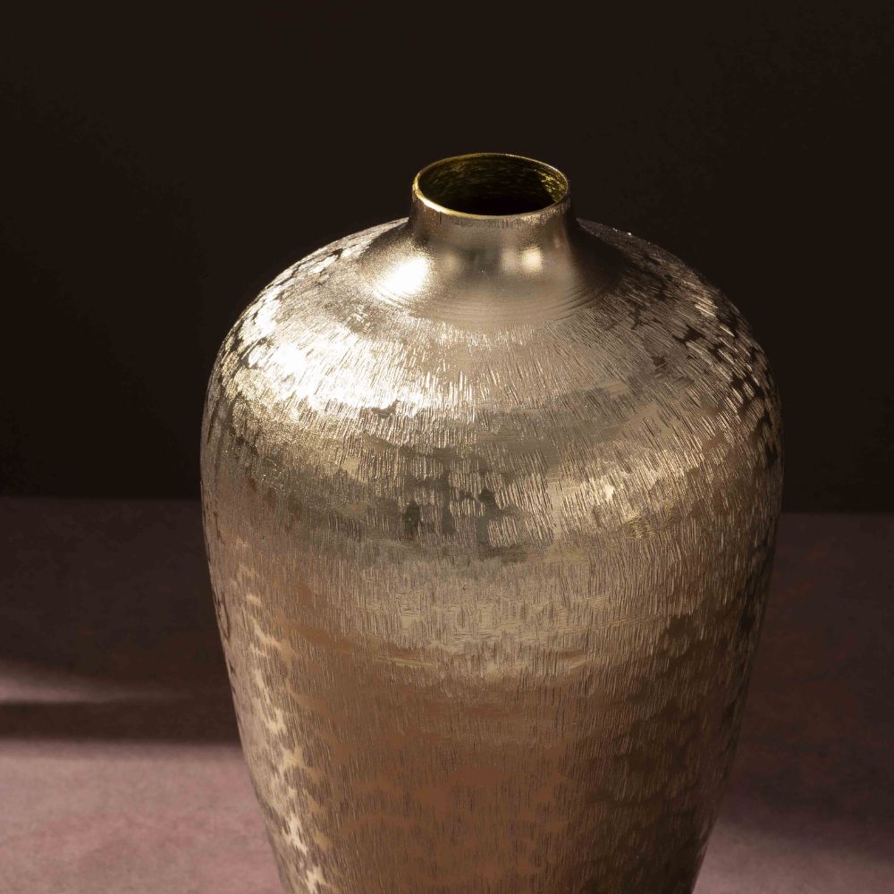 The Sirevest Gilded Texture Vase brings refined sophistication to your living space. With its handcrafted metallic finish and unique textured surface, this statement piece effortlessly enhances console tables, shelves, or dining areas. The golden sheen adds a touch of luxury, while the artisanal design ensures individuality in every piece. Display it on its own or with dried stems to elevate modern, rustic, or classic interiors.