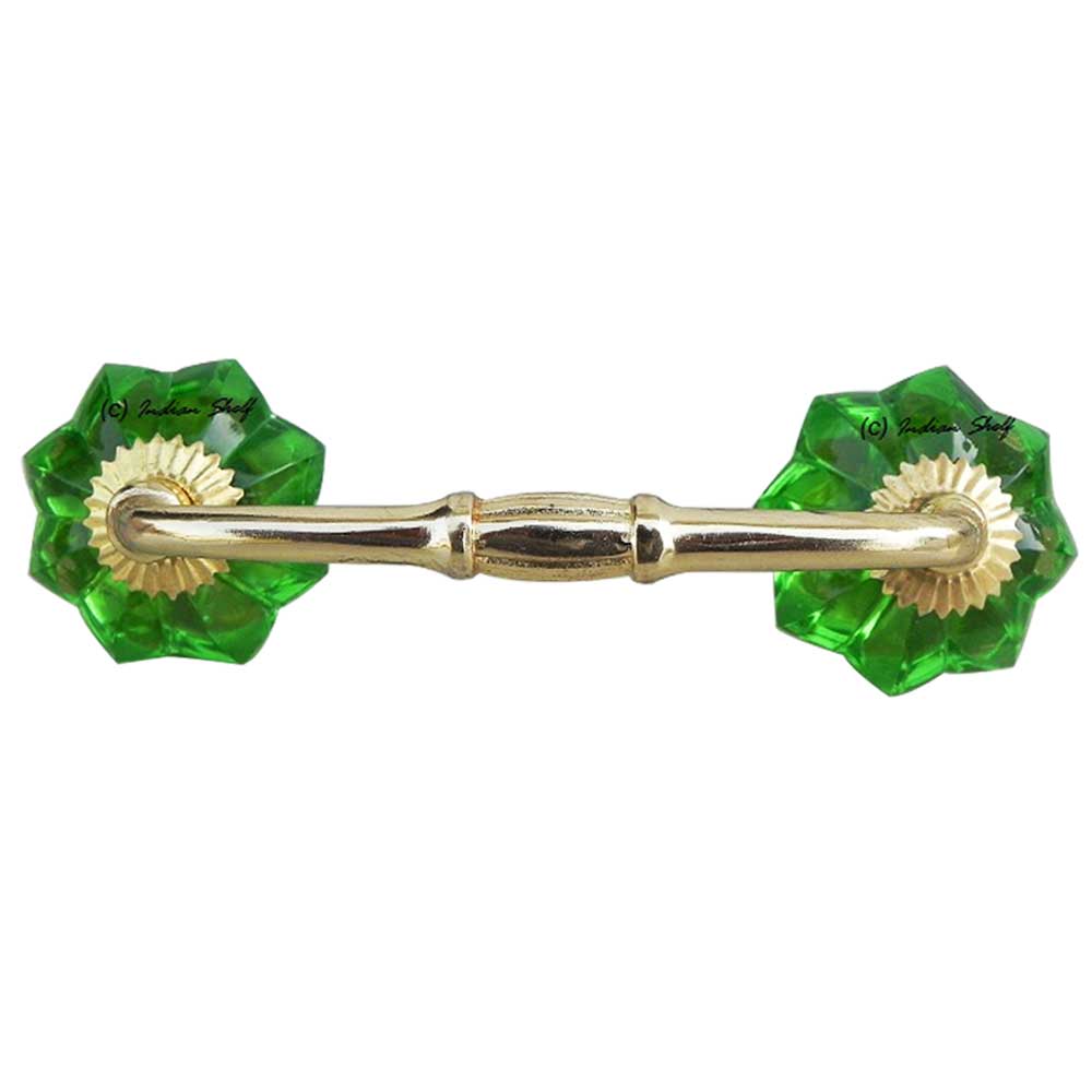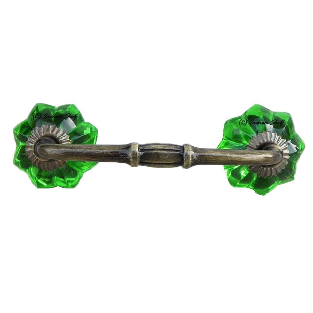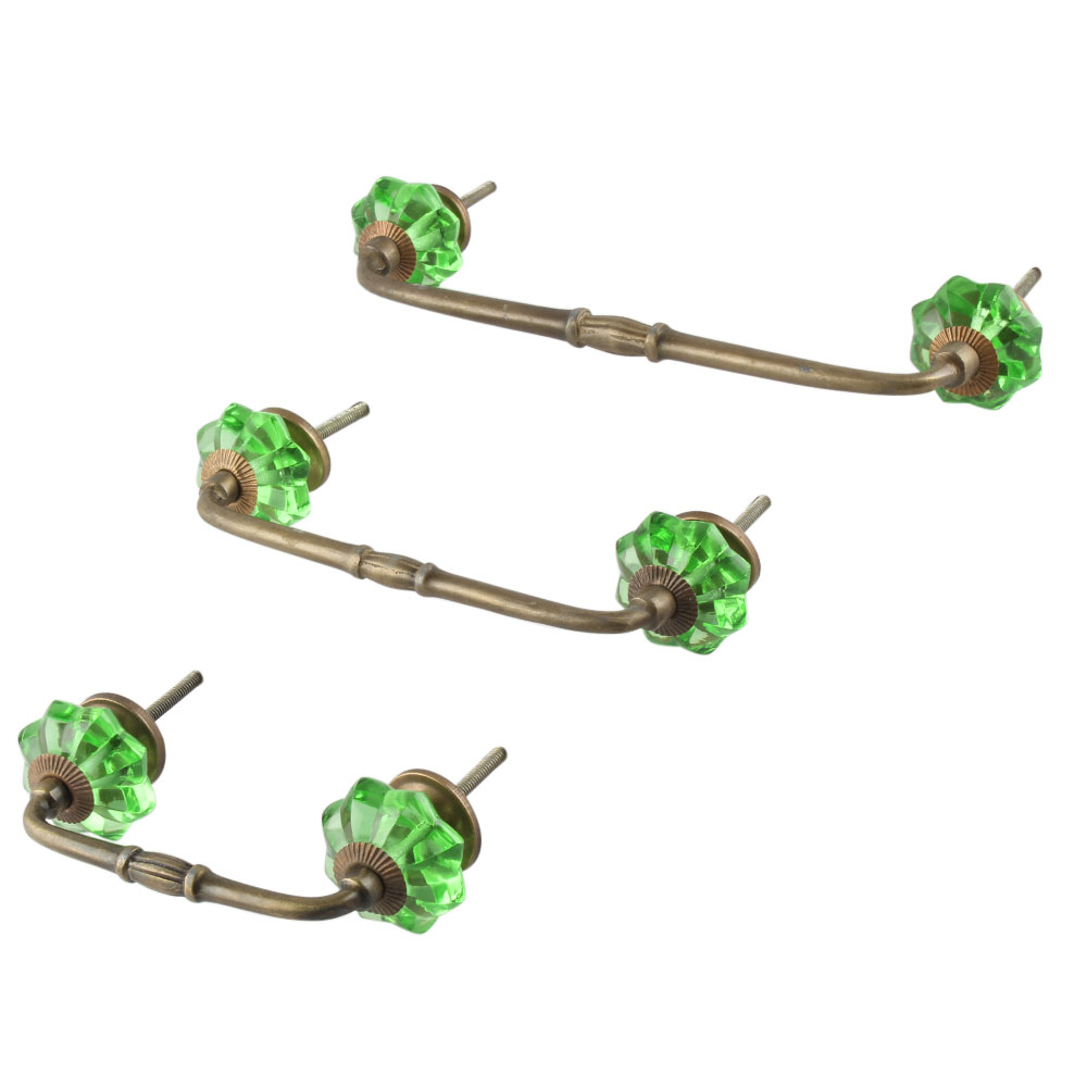 Smooth Green Glass Bridge Handle. Ideal for Drawer, Dresser, Cabinet, Wardrobe, Cupboard and Almirah.