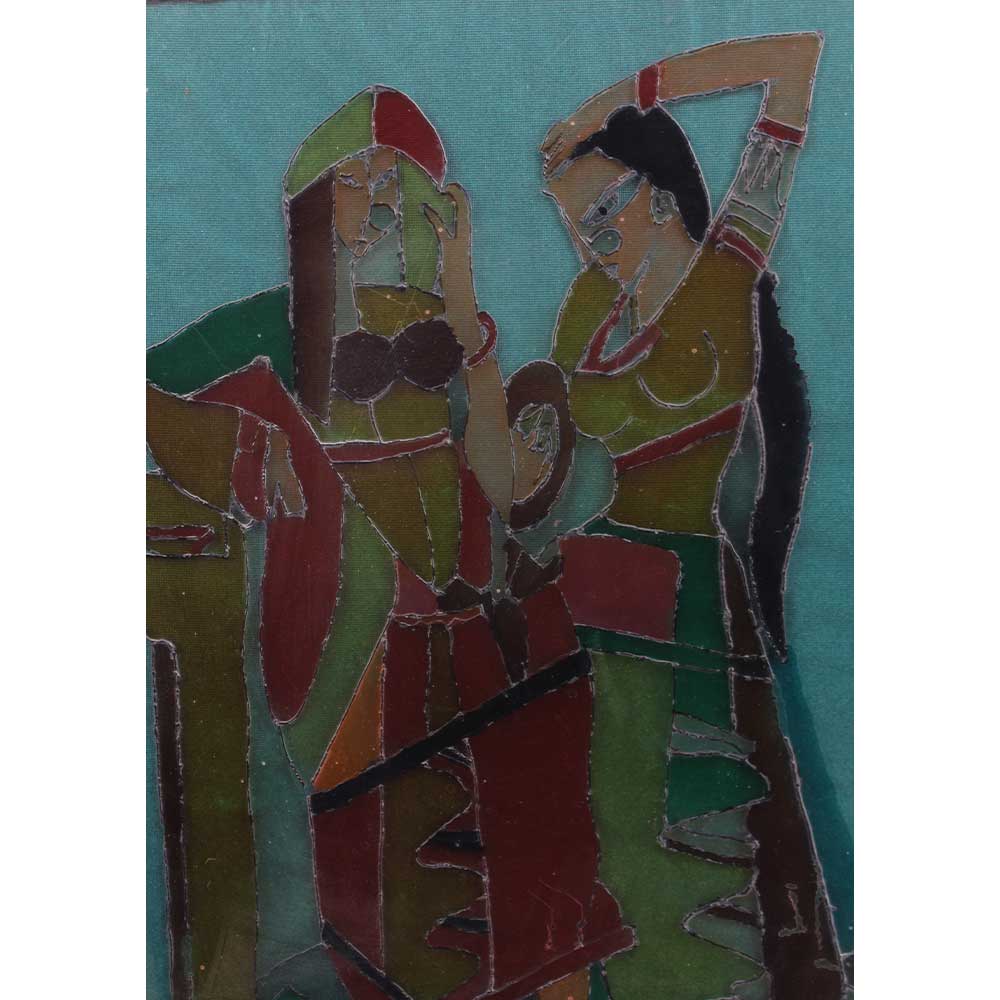 Bring elegance to your living room, dining room, hotel, and office leaves a strong and lasting Impression, Perfect for gifting and home décor glass with this handmade oil painting of village women made by the expert artist using bright colors.