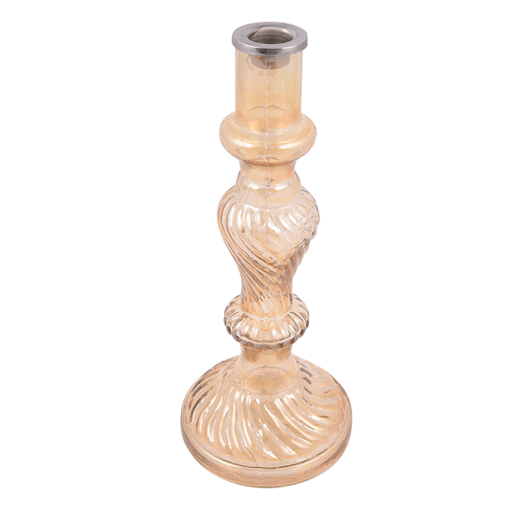 Glass Pillar Candle Holder With Silver Spiral Design