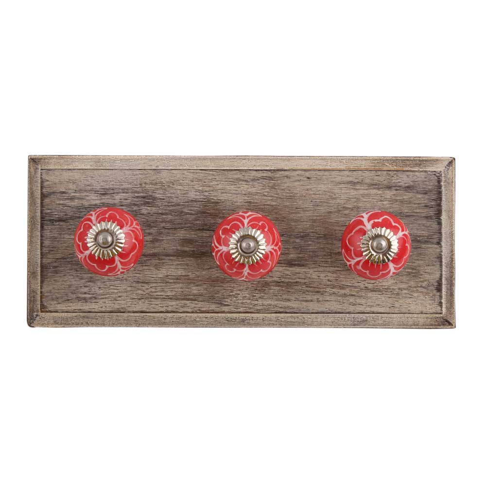 Gloriosa Ceramic Wooden Hook. A Perfect Complement to the Soft Tone of the Wood are these White Traditional Hat & Coat Hook Made of Genuine Porcelain and Brass. It can be use to Hang Jewellery, Leashes, Towels, Scarves, Light Weight Sweaters, Caps Etc.