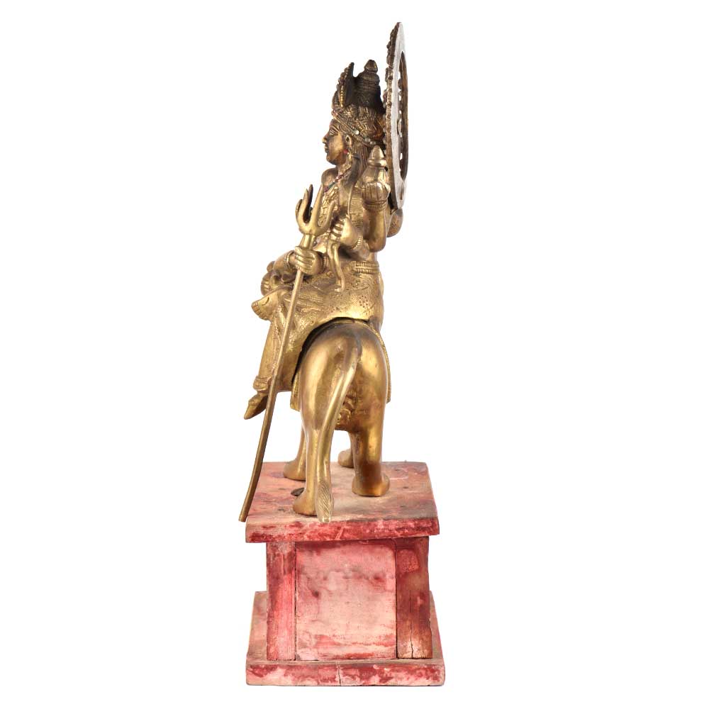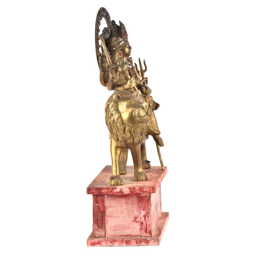 Durga Is a Popular Fierce Form of The Hindu Goddess Or Devi. She is Depicted with Multiple (Variously, From Ten Up to Thousand) Arms, Carrying Various Weapons and Riding a Ferocious Lion. She is Often Pictured as Battling or Slaying Demons, Particularly Mahishasura, the Buffalo Demon. Install this statue at home or office to draw inner strength and also to enhance your home decor .This statue comes with a silver finish.