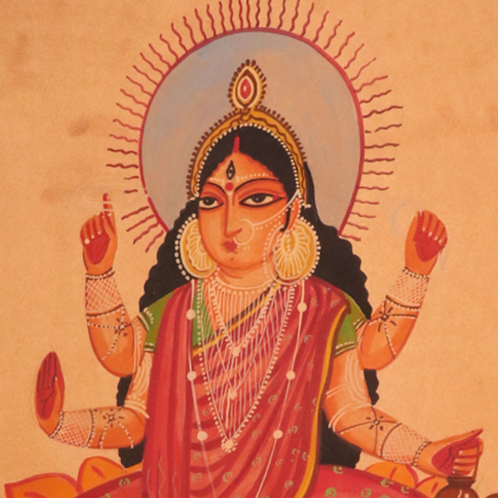 Immerse yourself in the captivating elegance of our Vintage Calendar Art Paper Painting, featuring the divine Goddess Laxmi seated gracefully upon a lotus flower. This exquisite work of art is a stunning fusion of traditional Indian iconography and timeless artistic brilliance. Radiate positivity and prosperity in your living space with the enchanting presence of Goddess Laxmi. As the embodiment of wealth, fortune, and abundance, her serene visage and delicate lotus throne will imbue your home with an aura of divine blessings. Whether adorning your walls, office, or sacred meditation space, this captivating painting will serve as a constant reminder to cultivate gratitude, generosity, and a harmonious life. This Vintage Calendar Art Paper Painting is the perfect addition for those who appreciate the rich cultural heritage of India and seek to surround themselves with uplifting, spiritual imagery. Elevate your decor and invite the blessings of the Goddess Laxmi into your world, transforming your space into a sanctuary of peace, prosperity, and inner radiance.