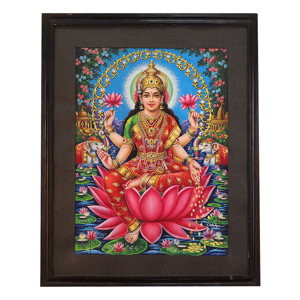 Prepare to be captivated by the breathtaking "Big Colander Art Painting of Laxmi Ji" by the acclaimed artist S. Sita Ram. This mesmerizing work of art seamlessly blends the sacred symbolism of the Hindu goddess Laxmi with a strikingly modern and innovative artistic expression. This captivating painting is more than just a decorative piece - it's a testament to the enduring power of Hindu spirituality and the boundless creativity of contemporary art. By placing the revered goddess Laxmi within the unexpected medium of a colander, the artist has crafted a work that challenges traditional boundaries and invites the viewer to see the divine in the unexpected. Whether you're a devoted follower of Hinduism, an art enthusiast, or simply someone seeking to infuse your living space with a touch of spiritual inspiration, this painting is a must-have. Hang it in your home, and let the radiant energy of Laxmi bless your daily life with abundance, prosperity, and a renewed sense of wonder. Elevate your decor and nourish your soul with this captivating fusion of ancient and modern artistic expression.