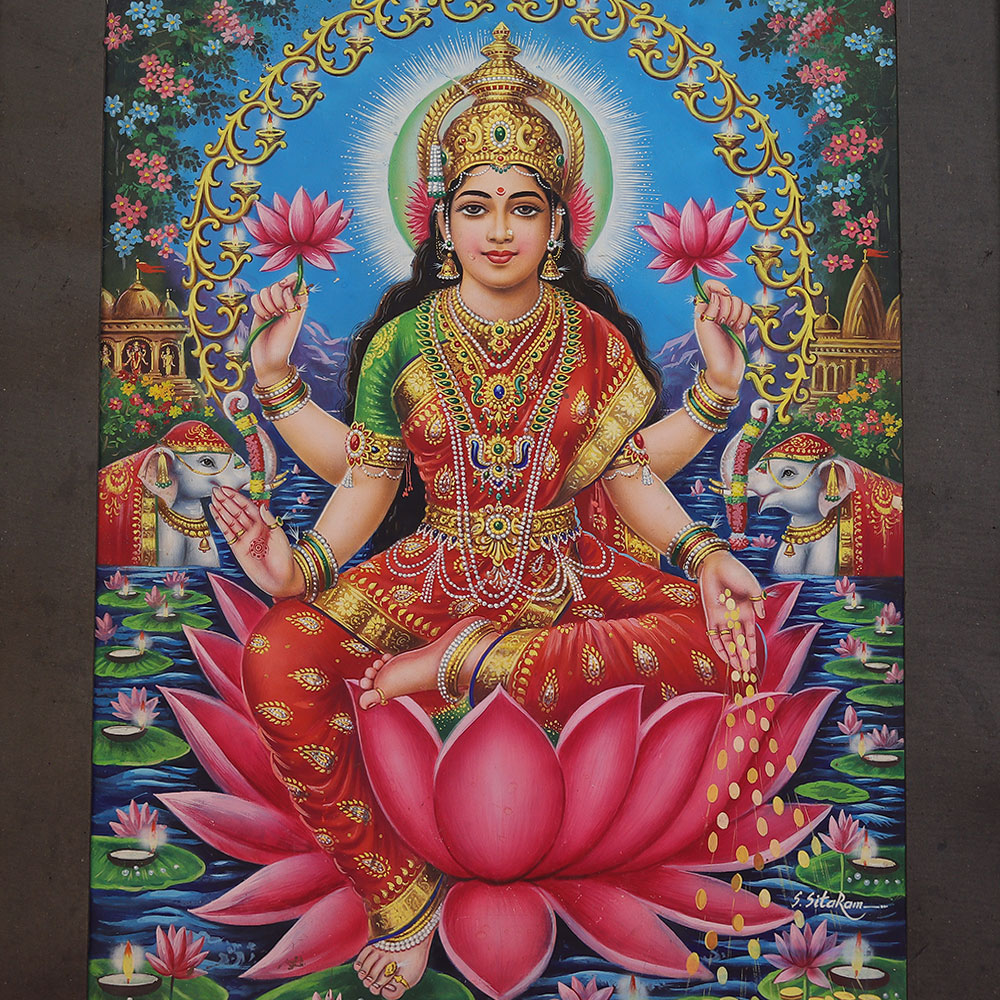 - Vibrant, intricate depiction of Laxmi, the goddess of wealth and prosperity