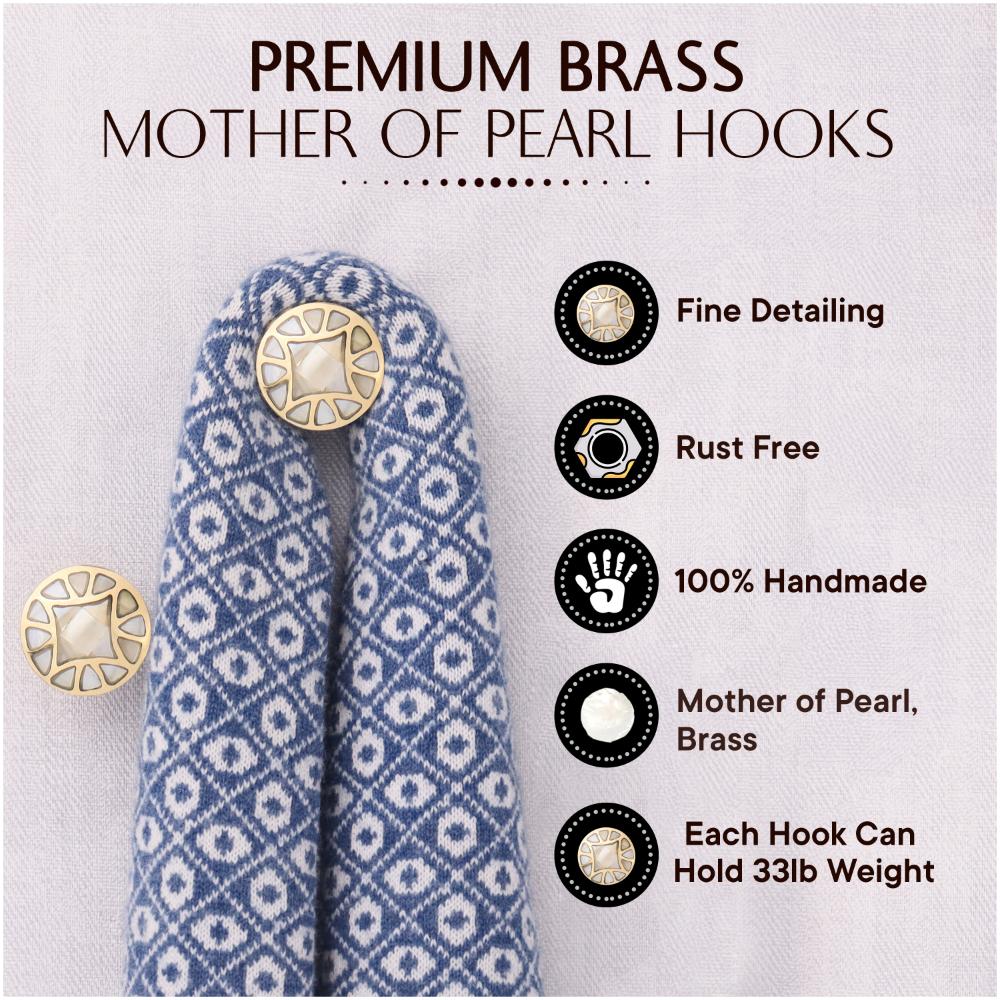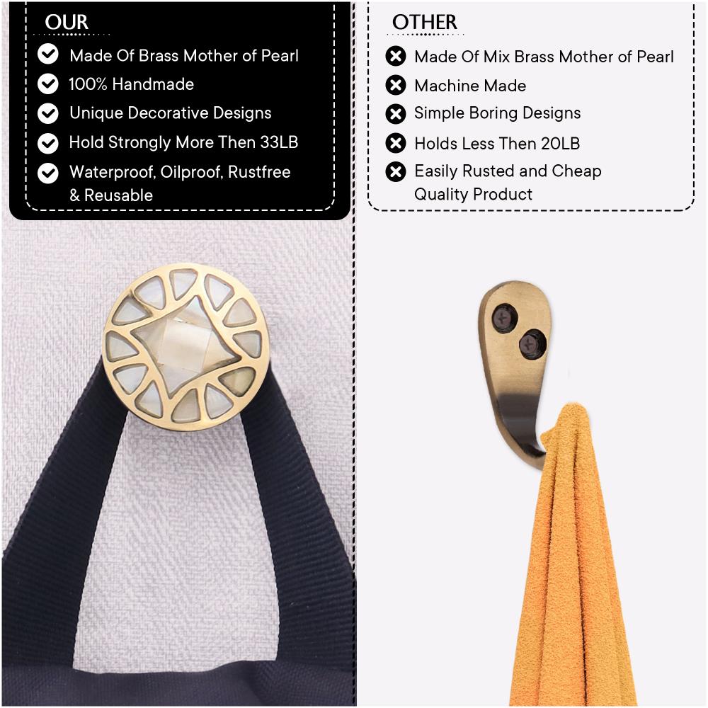 Gold Embroidered Metal Wall Hooks-3 Pieces. This Hook is Strong Enough to Hold Your Cloths, Keys, Tea Cups, Coffee Mugs, Hand Towels Etc.