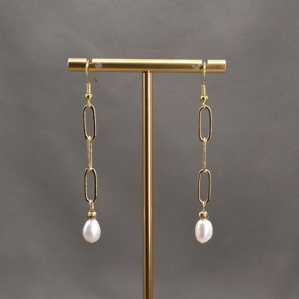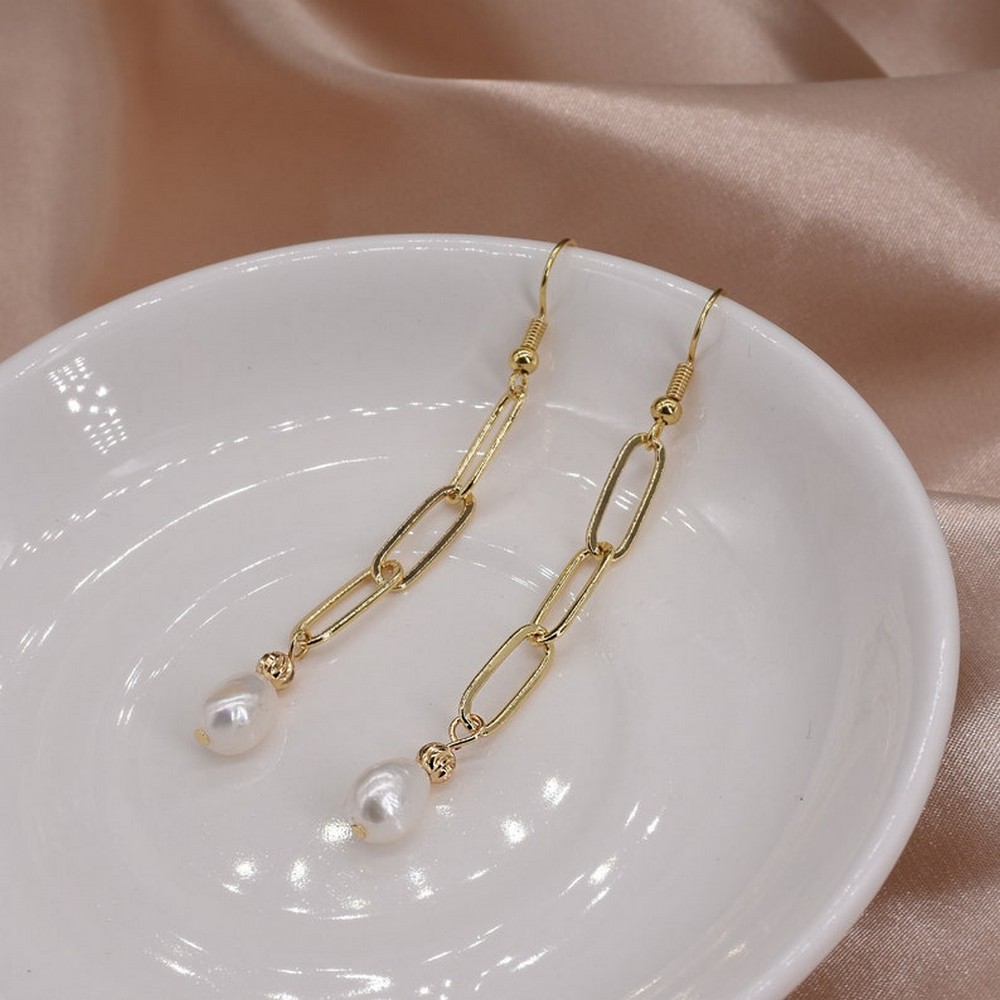 These earrings blend contemporary chain-link design with timeless pearl beauty, making them ideal for fashion lovers, gift-givers, and bridal styling.