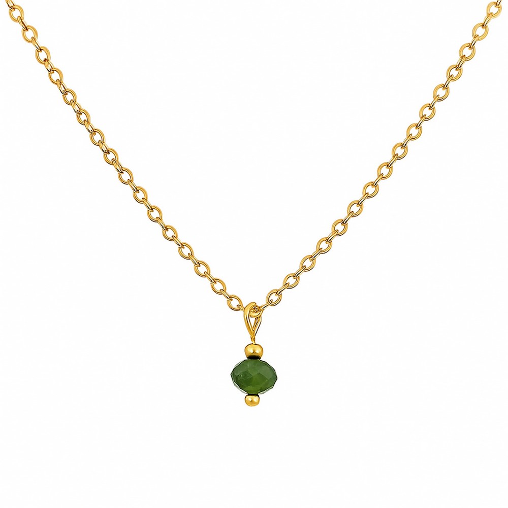 The necklace features a green bead charm selected for its vibrant color and smooth finish.