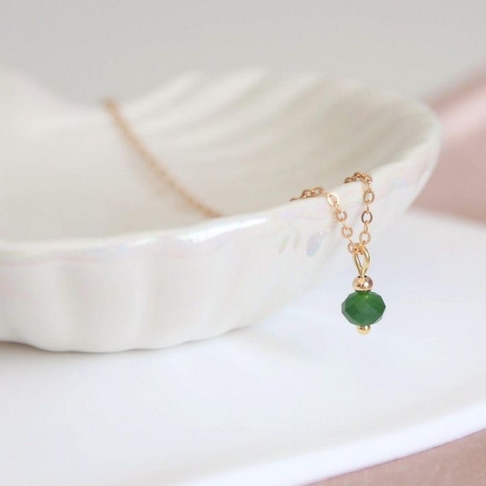Simple, elegant, and effortlessly charmingour gold plated minimalist necklace with a green bead charm is the perfect everyday accessory. Featuring a single faceted green gemstone bead suspended from a delicate gold chain, this piece brings a touch of natural colour and refined minimalism to any outfit.
