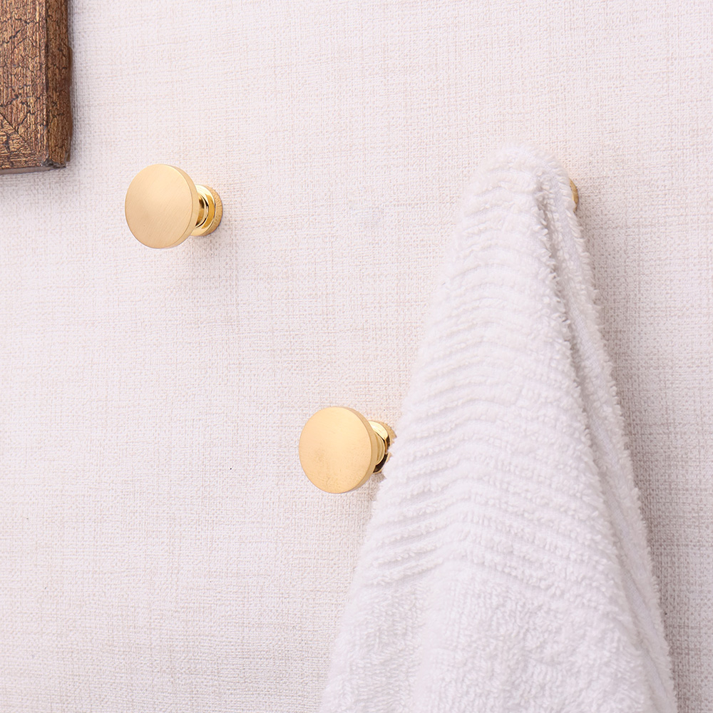 Bring refined craftsmanship into your home with this set of 3 handcrafted gold round-shaped wall hooks, designed exclusively by Indianshelf. Forged from 100% solid brass and finished with a soft brushed matte gold coating, these hooks combine utility with sculptural appeal — offering an elegant way to manage coats, bags, and accessories while elevating your interior design.