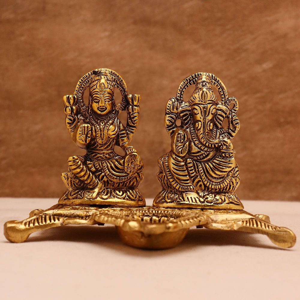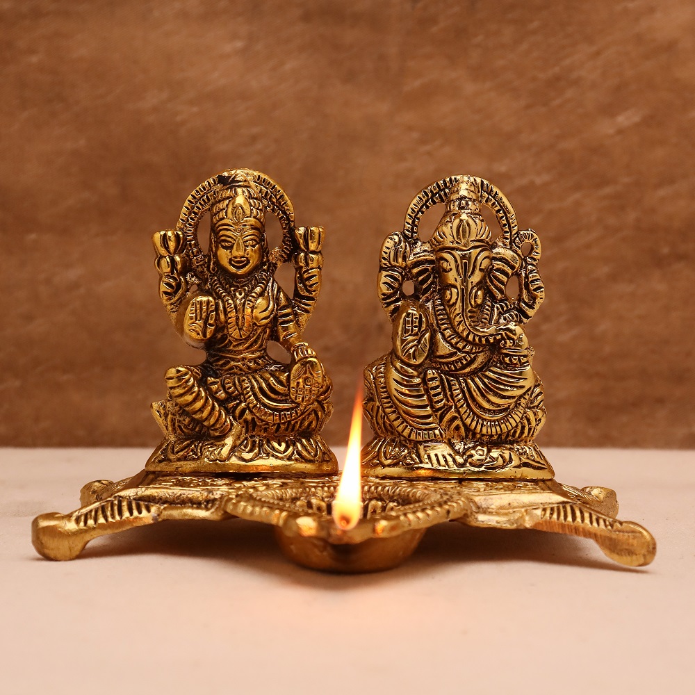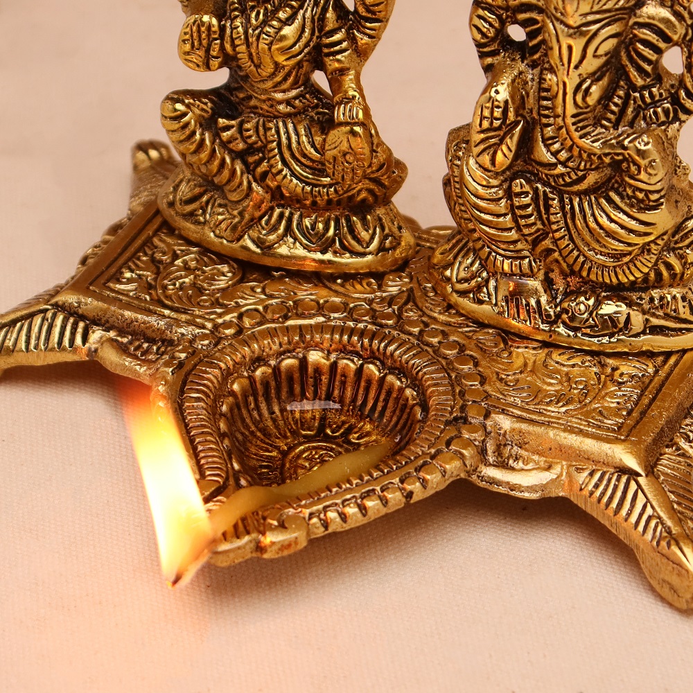 The Golden Aluminium Laxmi Ganesh Diwali Oil Diya Lamp is a product that brings divine light to your home. This artfully designed diya beautifully portrays the designs of Lord Laxmi and Lord Ganesh to bring prosperity, wealth, and good fortune. This golden finish with a traditional look makes it an ideal lamp for your Diwali celebrations or any auspicious occasion.