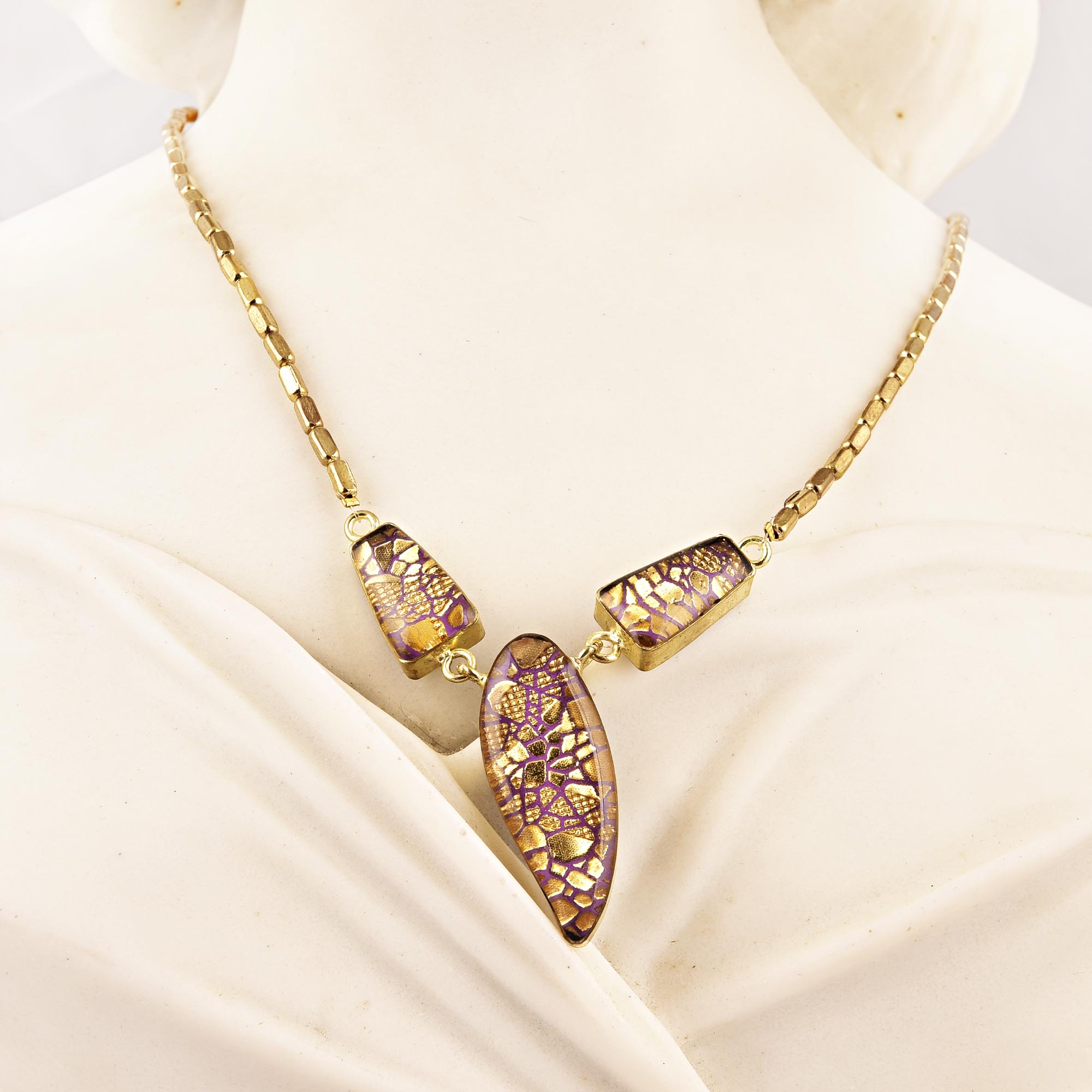 Golden Beabed Necklace New Designer Jewellery. Leather, Glass, Brass Chain and Brass Clasp .