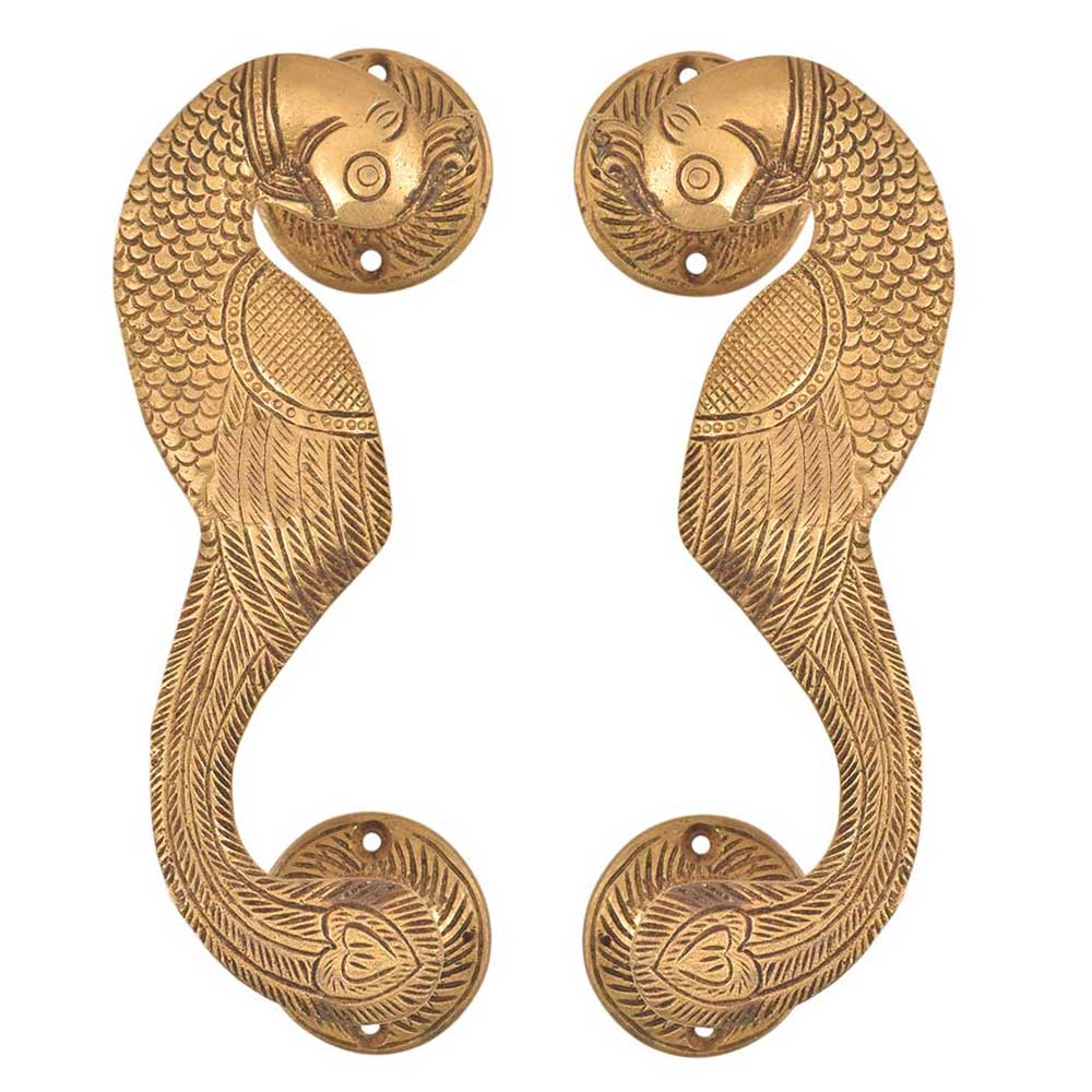 Brass Curved Peacock Door Handle. Ideal for Drawer, Dresser, Cabinet, Wardrobe, Cupboard and Almirah.