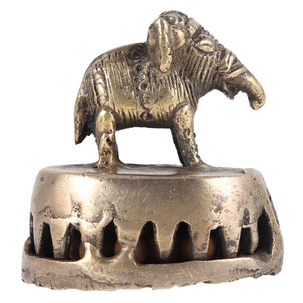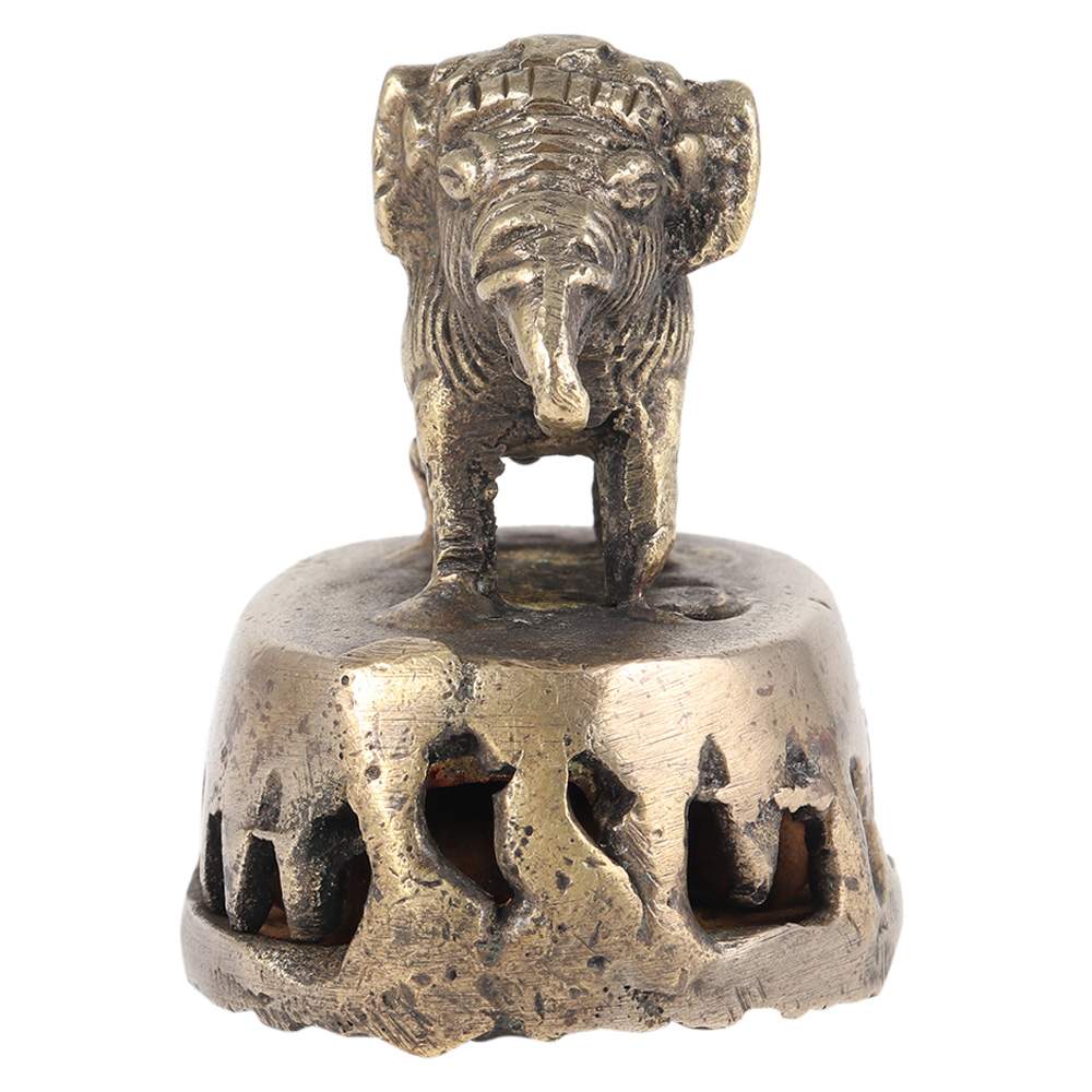 Old classic north india brass handmade Engraved Elephant jali design Foot cleaner or scrubber for collections with an indian native made Elephant. A collectible item comprised of an animal sculpture mounted upon a brass scrubber that cleans the foot.