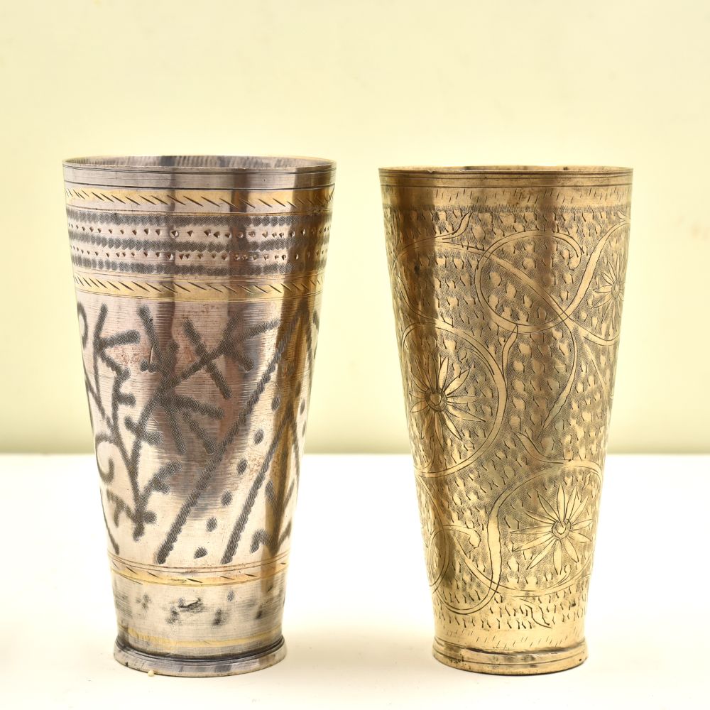 Golden Brass Embossed Floral Engraved Lassi Glass a sturdy, elegant, and lovely addition to your home decor. It is frequently quickly transformed into a lovely day of remembrance, Wedding, Diwali, or Valentine gift item.
