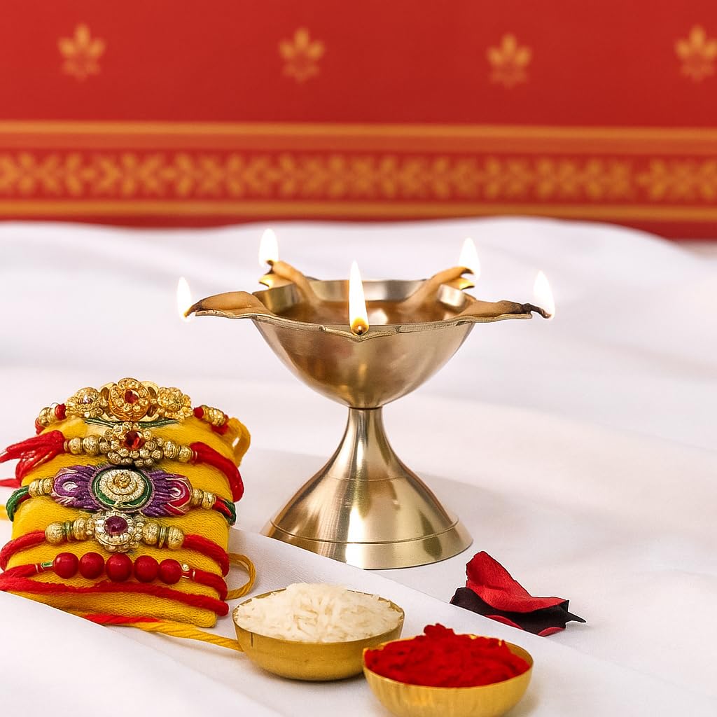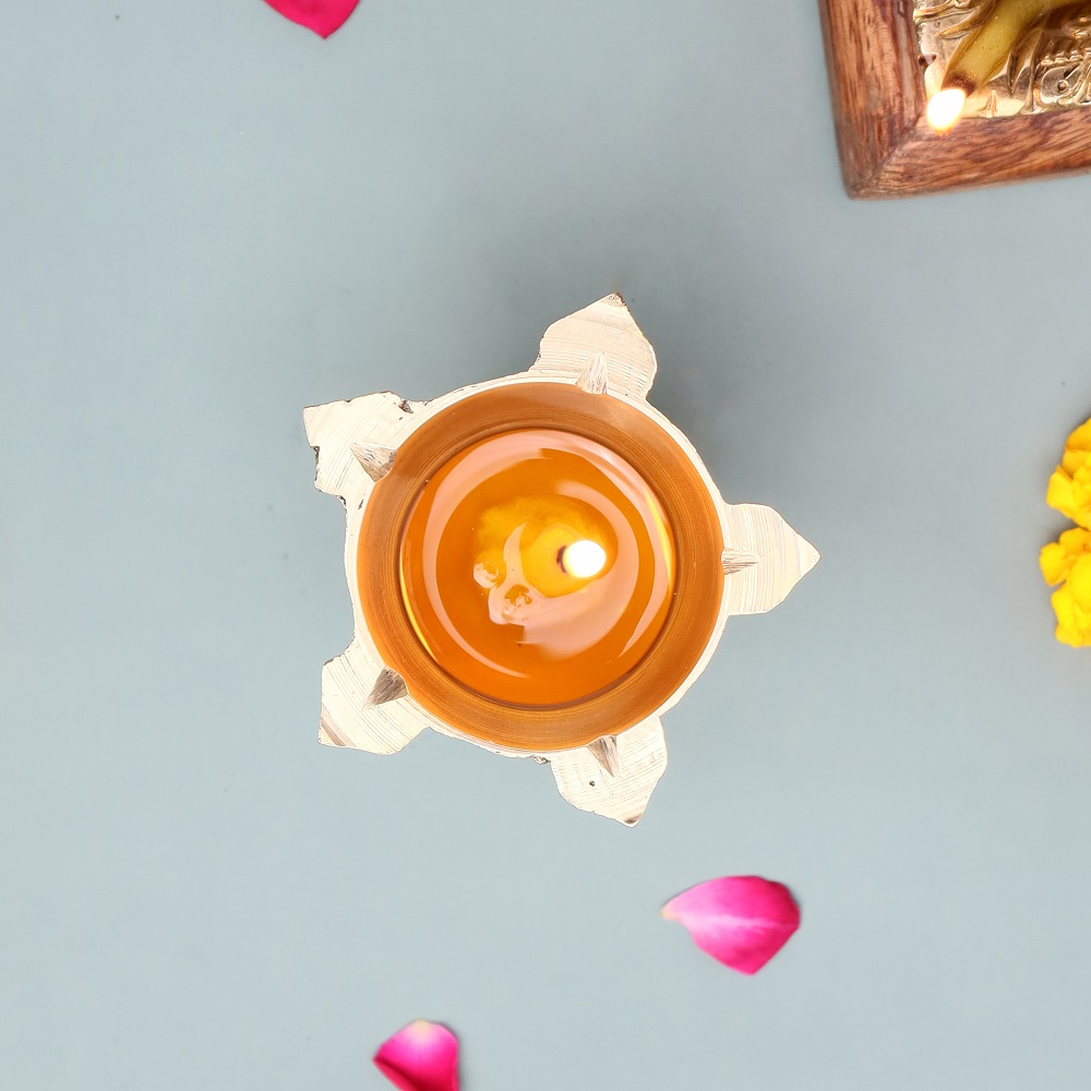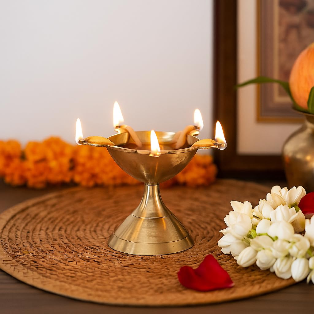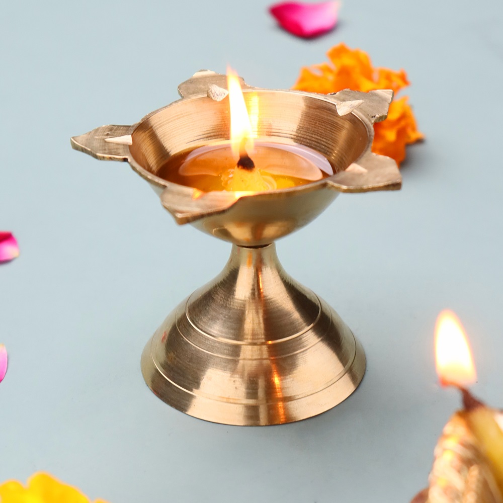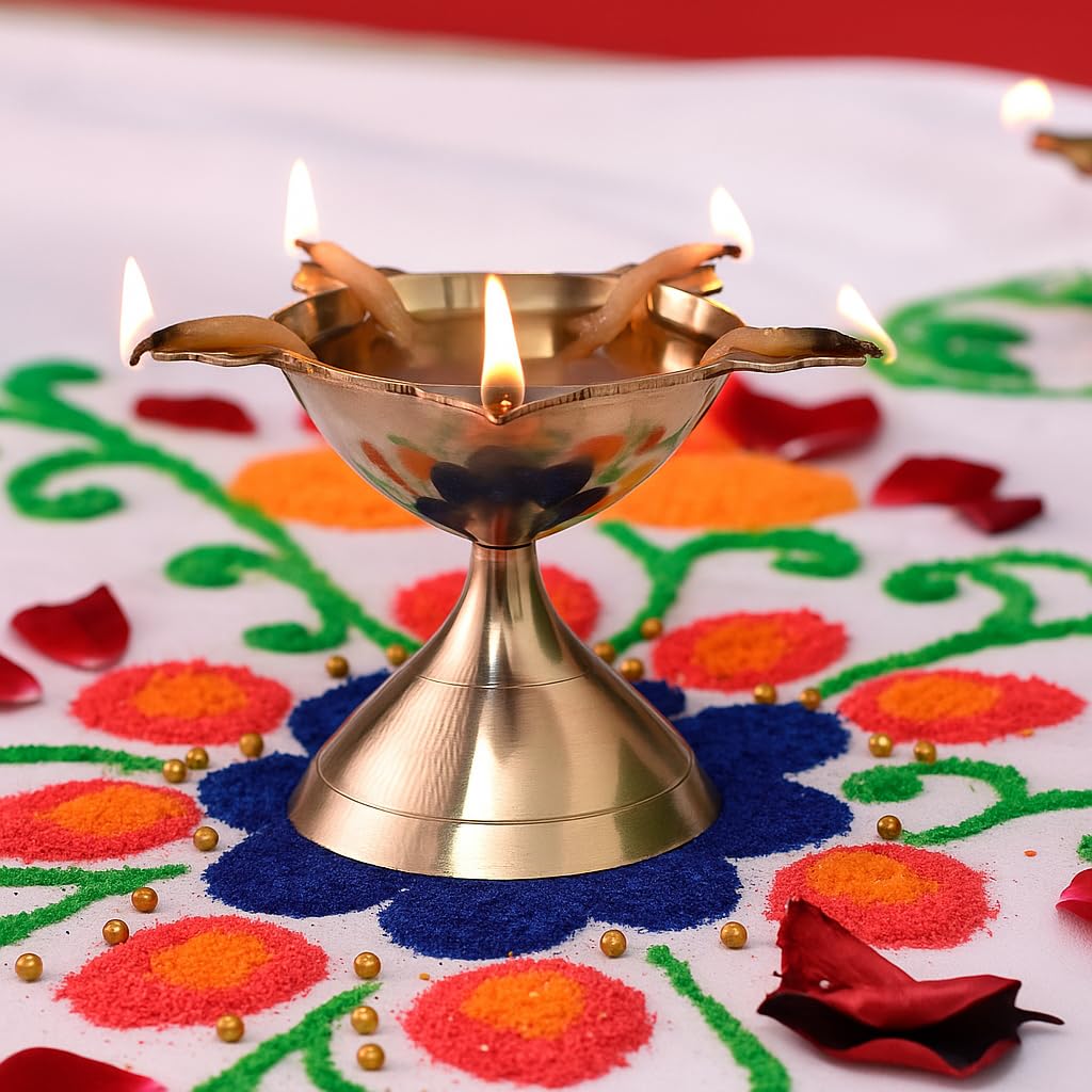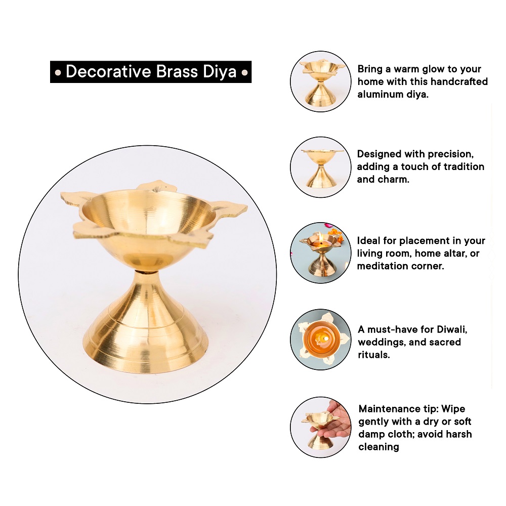 Polish gently with brass cleaner to restore shine and keep the diya glowing for years.
