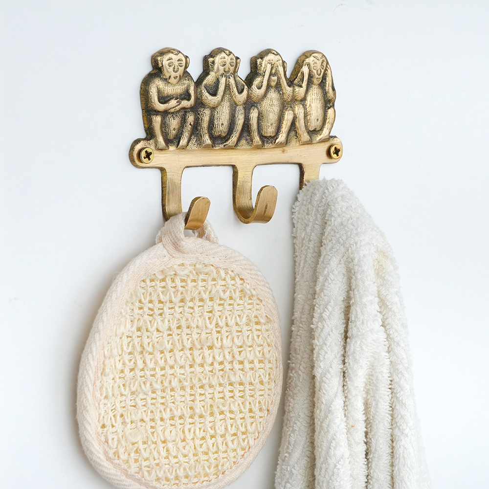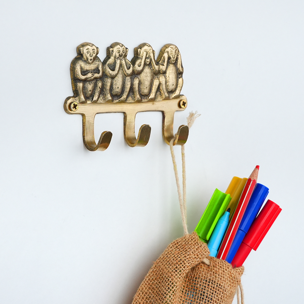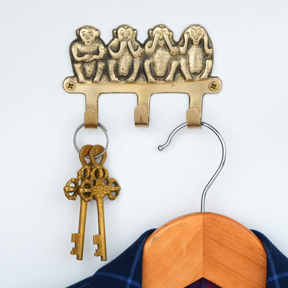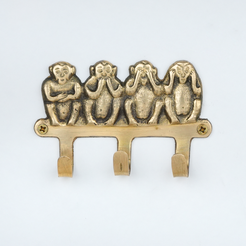 Handmade Golden Brass Four Elephant Wall Hooks. This Hook is Strong Enough to Hold Your Cloths, Keys, Tea Cups, Coffee Mugs, Hand Towels Etc.