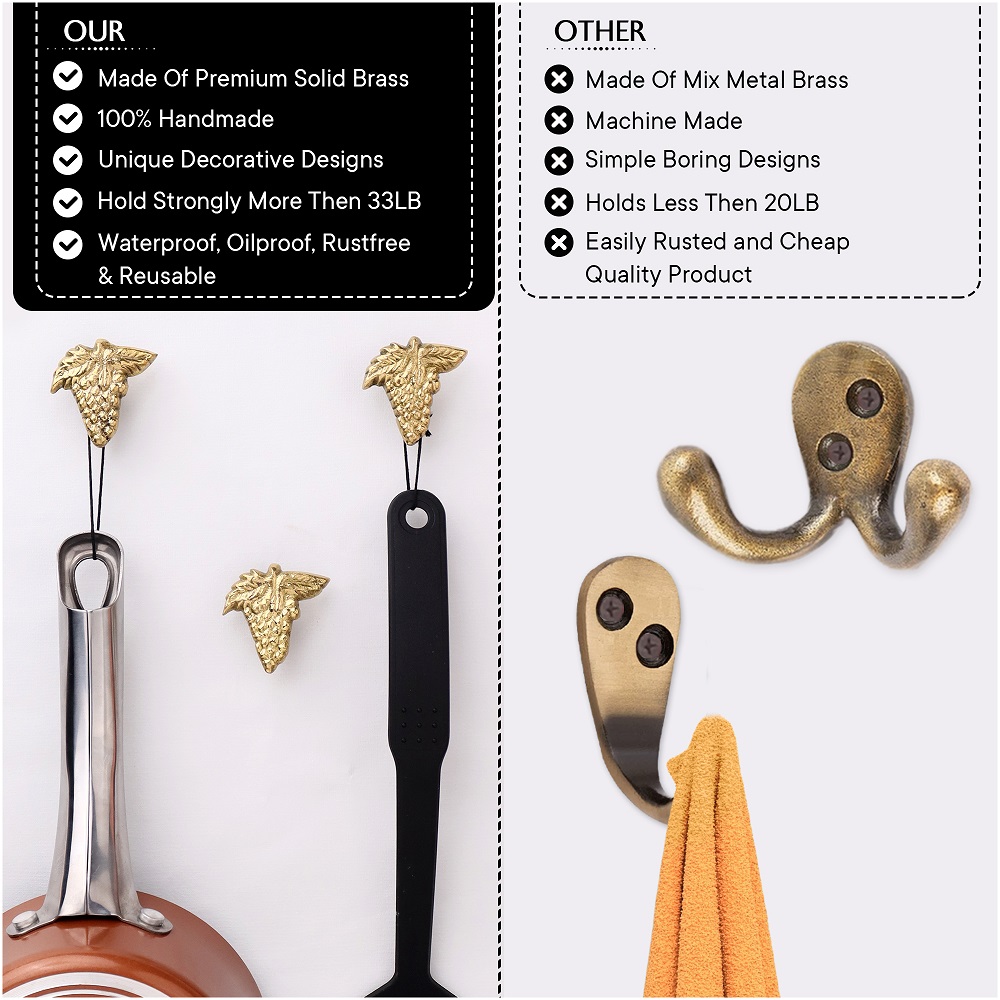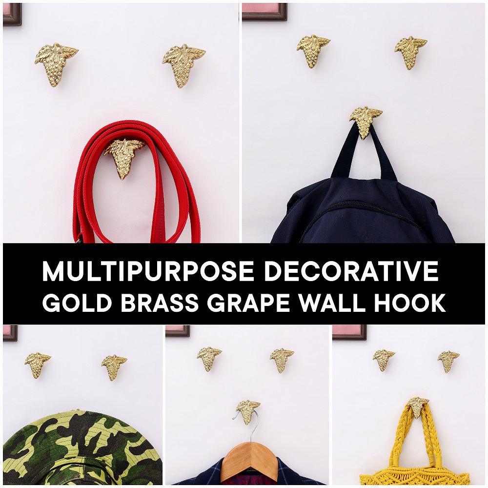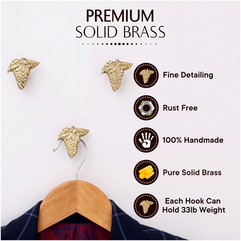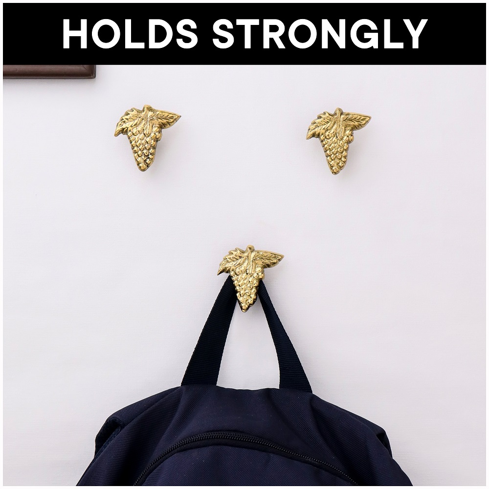 Handmade Golden Brass Grape Wall Hooks Set of 3. This Hook is Strong Enough to Hold Your Cloths, Keys, Tea Cups, Coffee Mugs, Hand Towels Etc.
