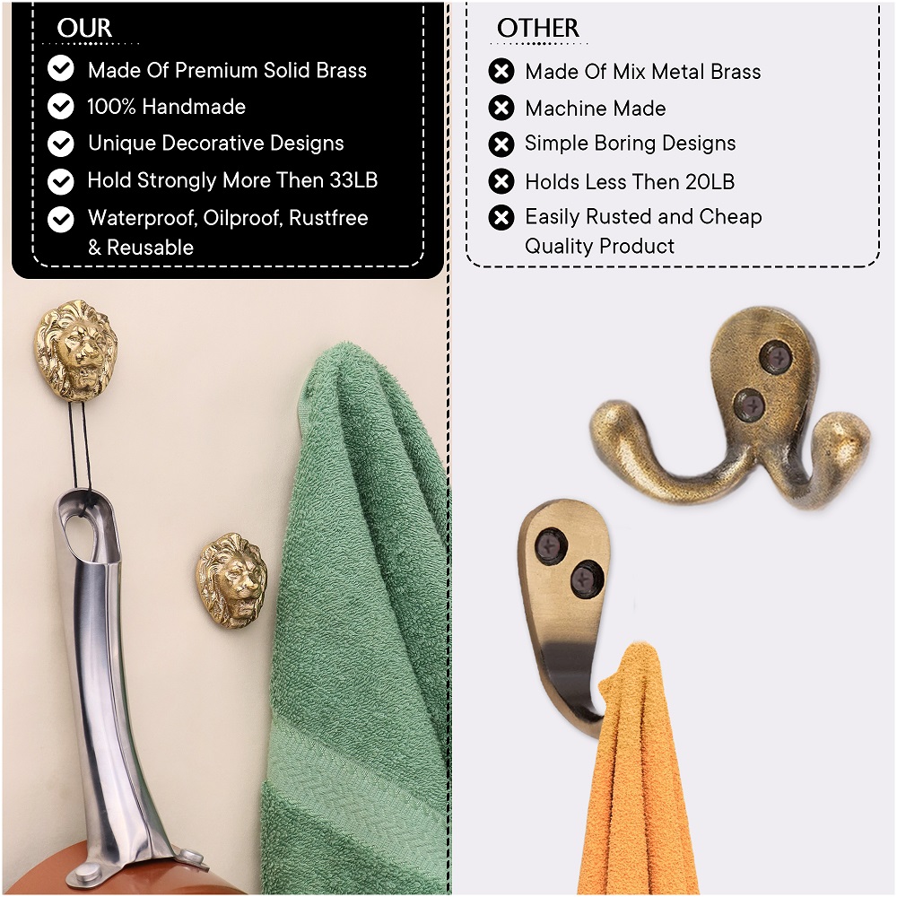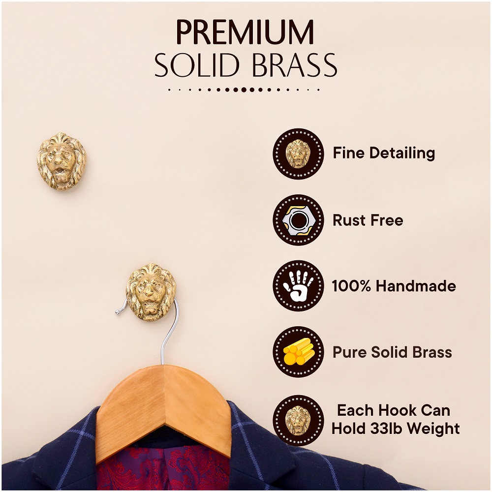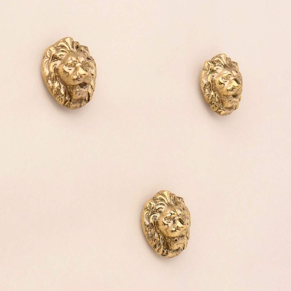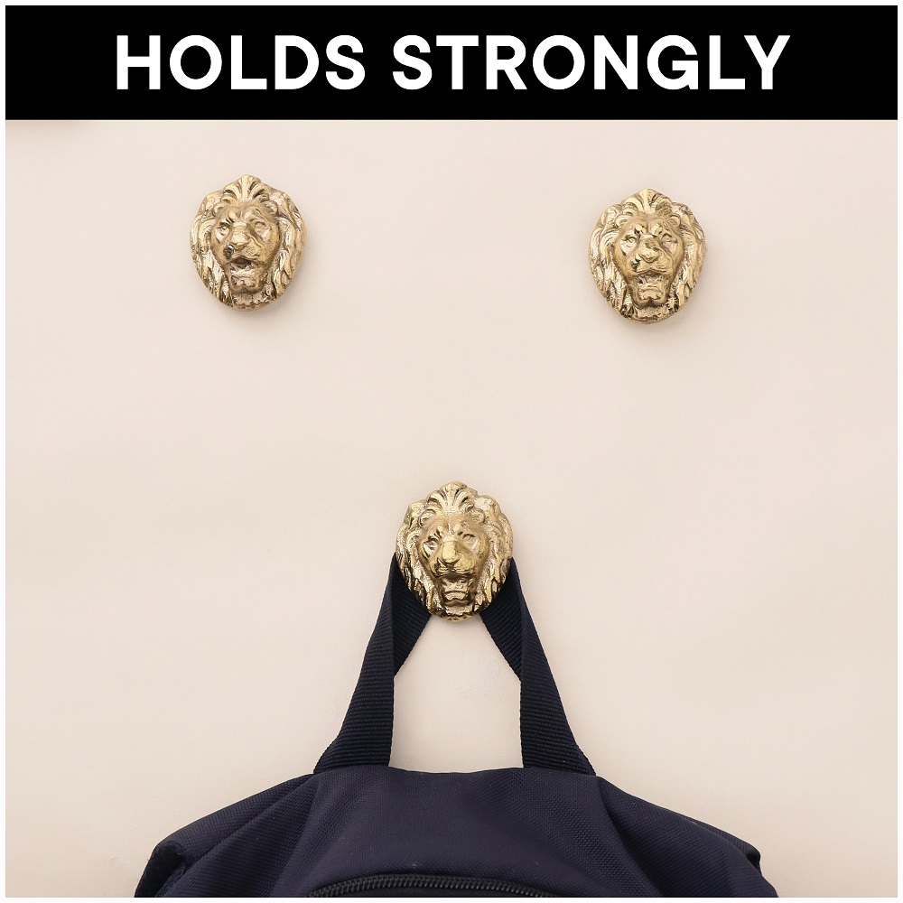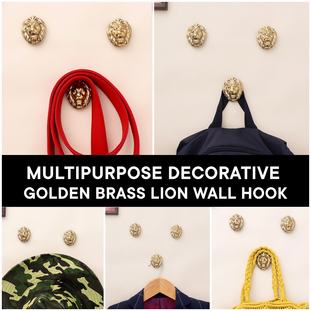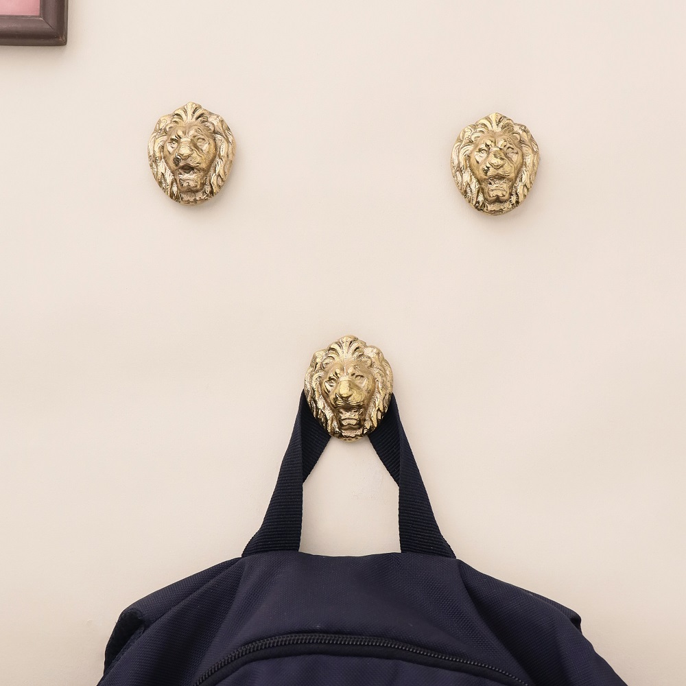 Handmade Golden Brass Lion Wall Hooks Set of 3. This Hook is Strong Enough to Hold Your Cloths, Keys, Tea Cups, Coffee Mugs, Hand Towels Etc.