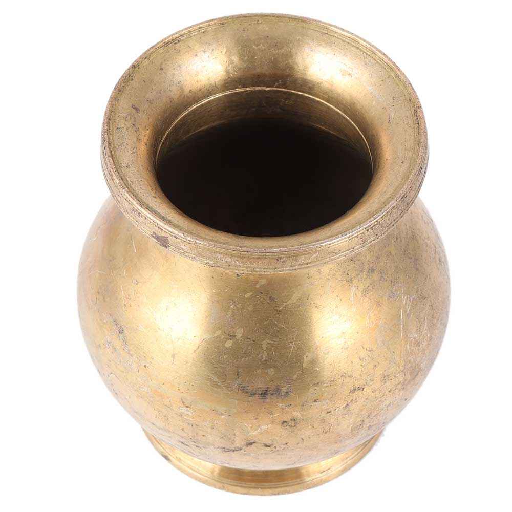 Handmade brass water pot with a golden sheen has a round body used to store holy water pot can also be used as an ideal decoration for your home or office. It can be used as a flower pot or showpiece for your centre table or corner table.