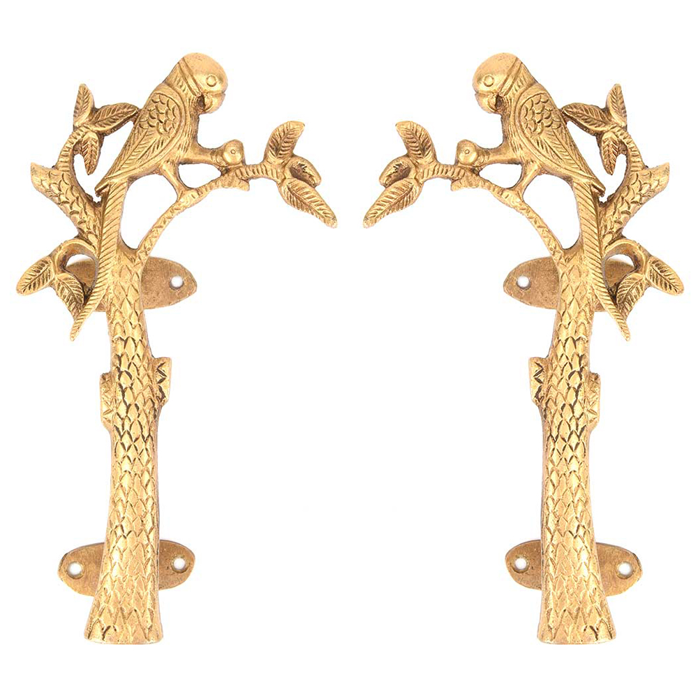 Golden Bronze Parrot on Tree Door Handle (Pair). Ideal for Drawer, Dresser, Cabinet, Wardrobe, Cupboard and Almirah.