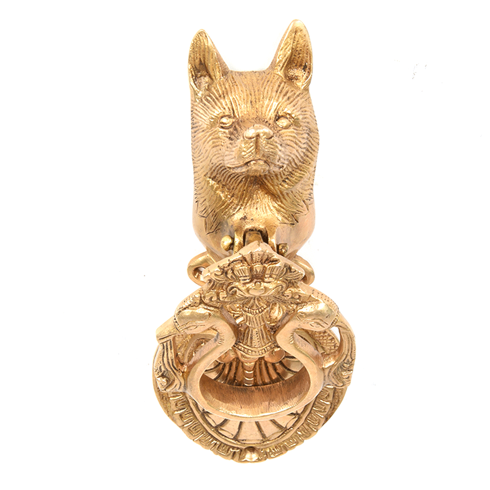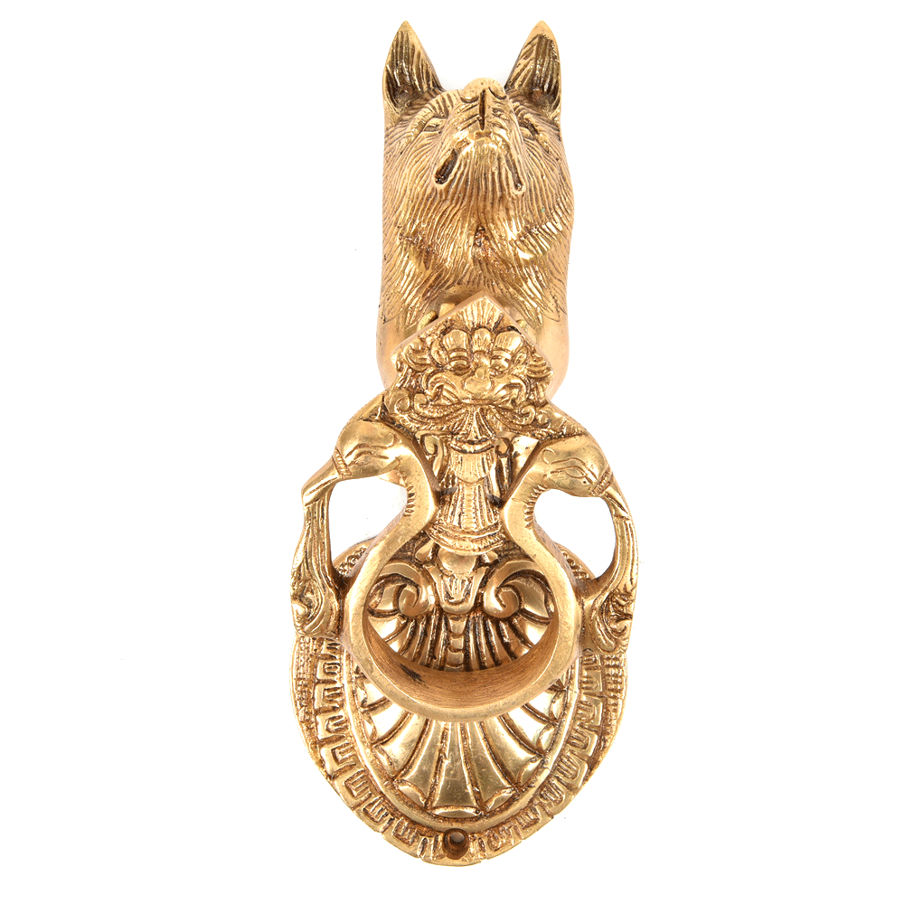 Golden Bronze Wolf Atop Two Peacocks Knocker Ring. Ideal for your main doors.