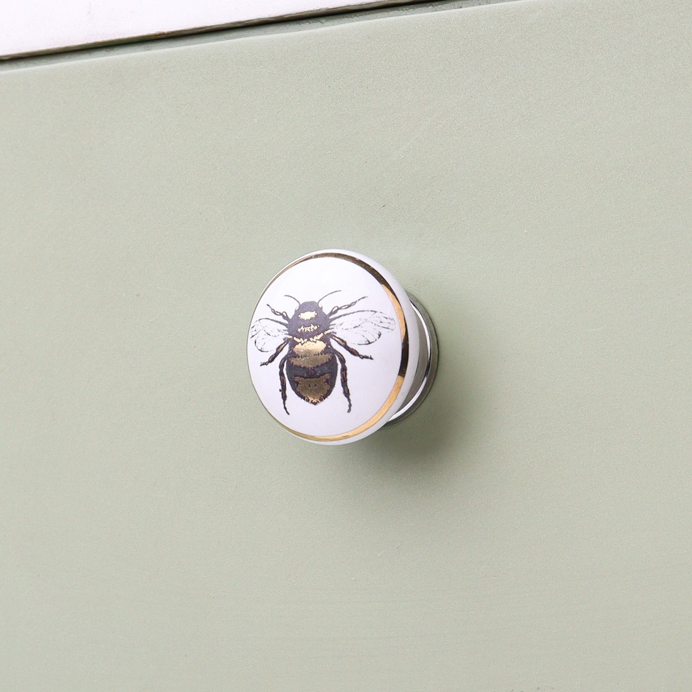 Whether your home is contemporary, rustic, or vintage-inspired, the Golden Bumble Bee Flat Ceramic Cabinet Knob will complement a variety of interior styles. Its subtle elegance and natural motif make it a versatile addition to your furniture.