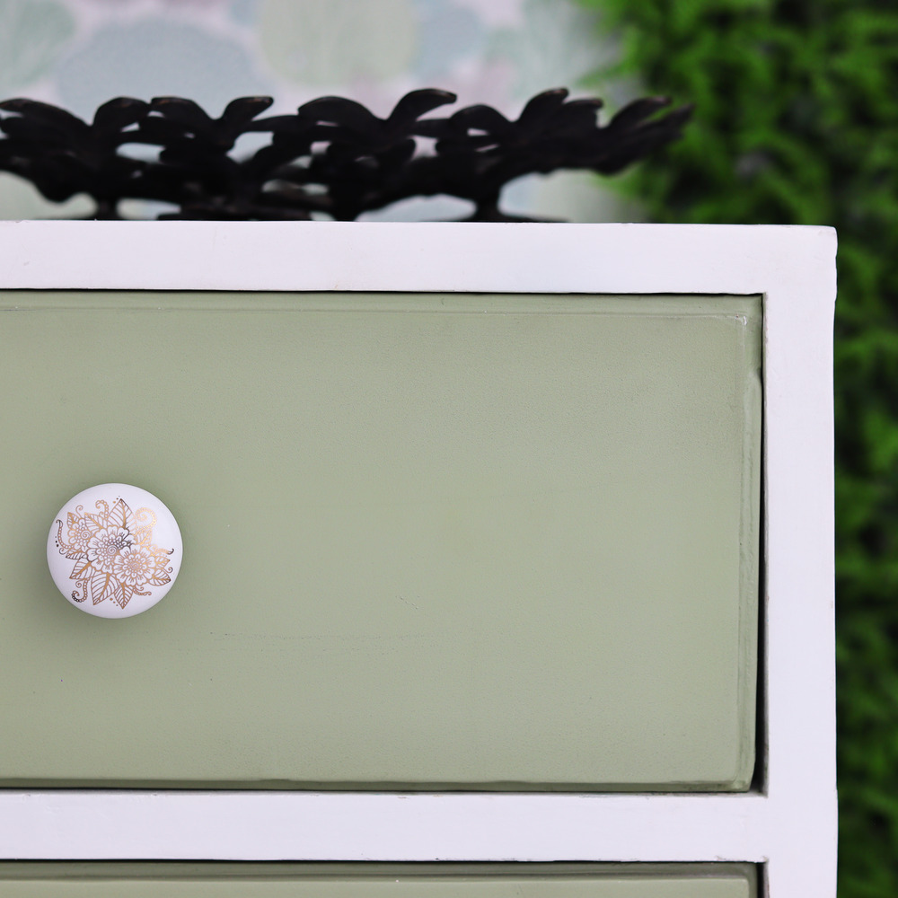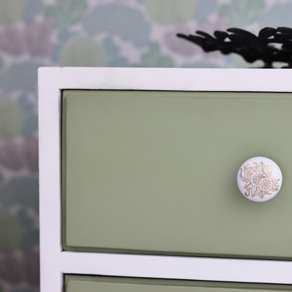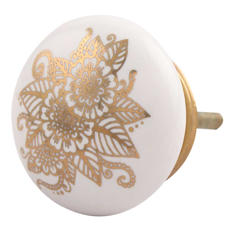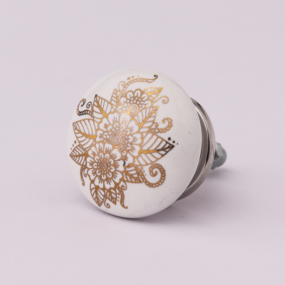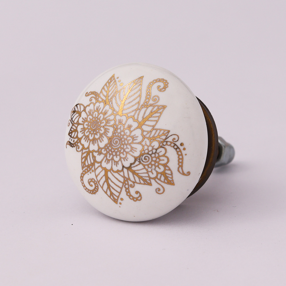 The gold accents framing the floral design provide a refined touch, making this knob a standout feature. The smooth ceramic base ensures durability while offering a glossy finish that highlights the intricate floral details. The combination of the soft floral motif and luxurious gold creates a harmonious balance of elegance and charm.